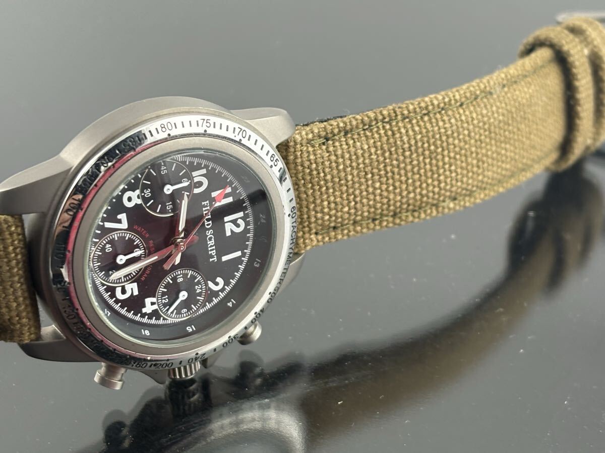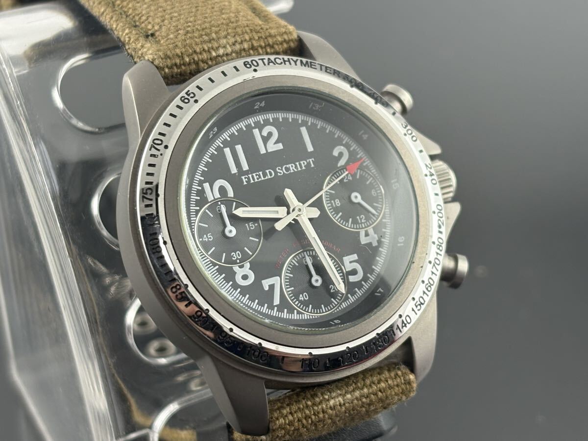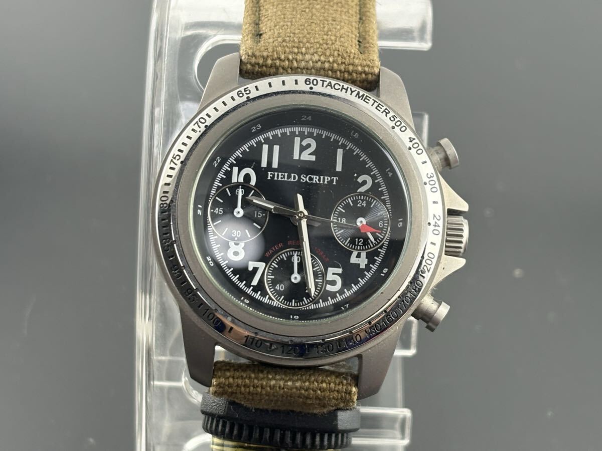 商品名:[A1777]1円~☆メンズ腕時計 クォーツ ミリタリー FIELD SCRIPT チタン クロノグラフ 動作品