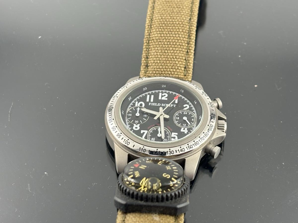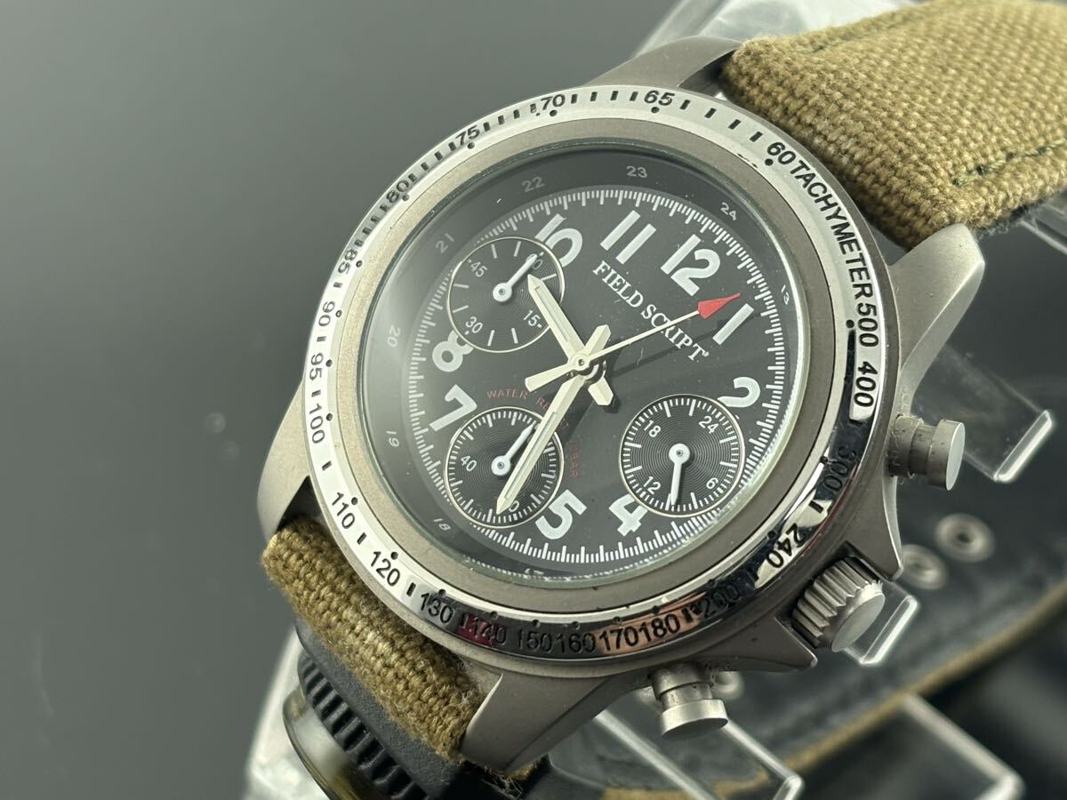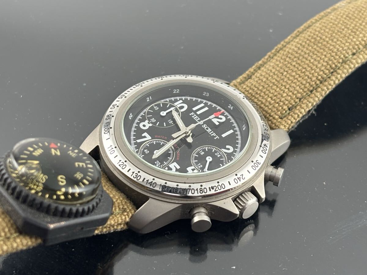 商品名:[A1777]1円~☆メンズ腕時計 クォーツ ミリタリー FIELD SCRIPT チタン クロノグラフ 動作品