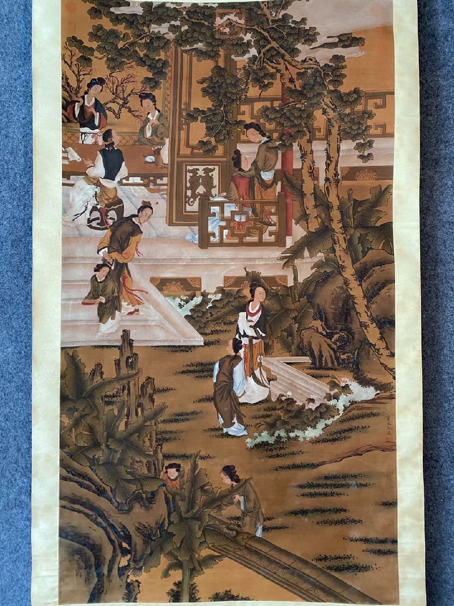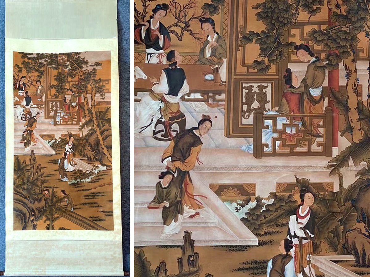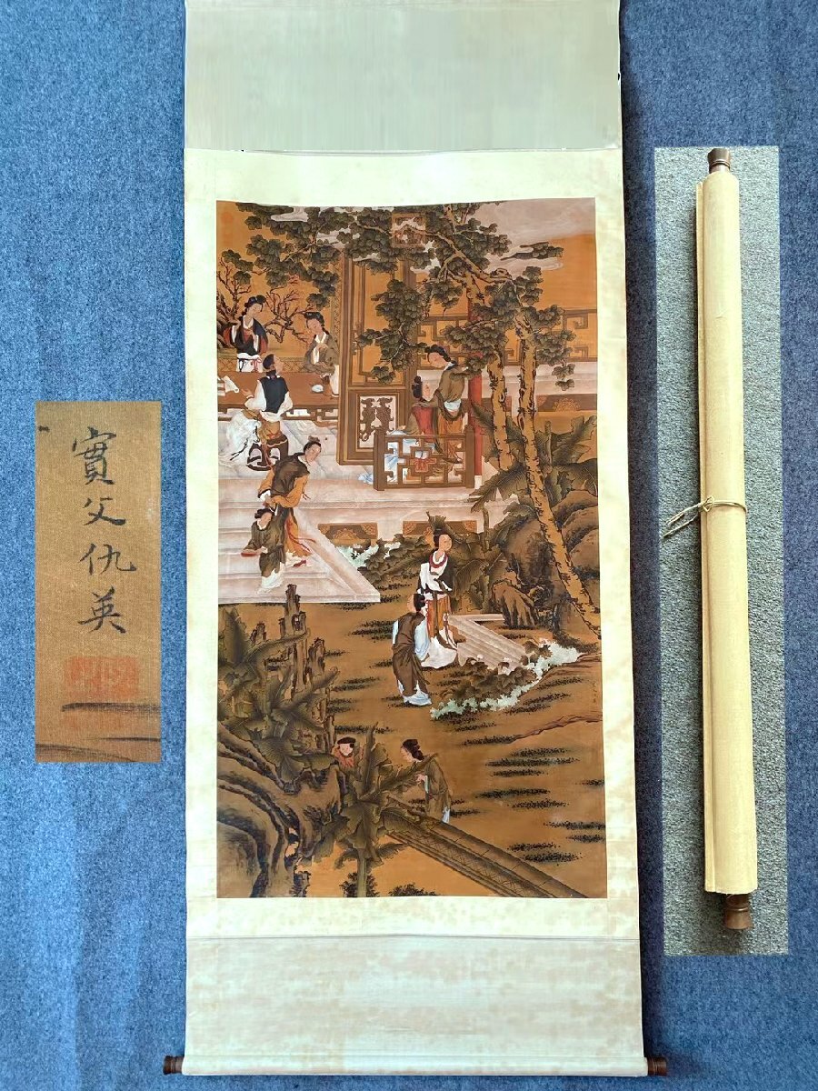 【安】中国明時代画家「仇英書」絹本「人物図」掛軸 中国画 墨寶妙品 中国書道 古美術 368 サイズ(約寸) |