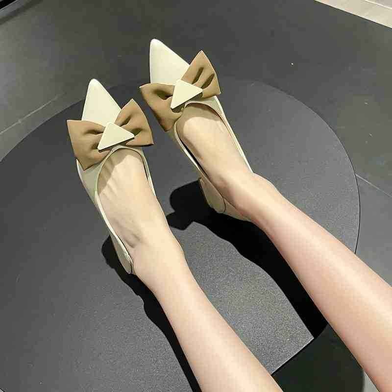 ・ポインテッドトゥデザインとアッパーに装飾があり脚がスッキリ見え。