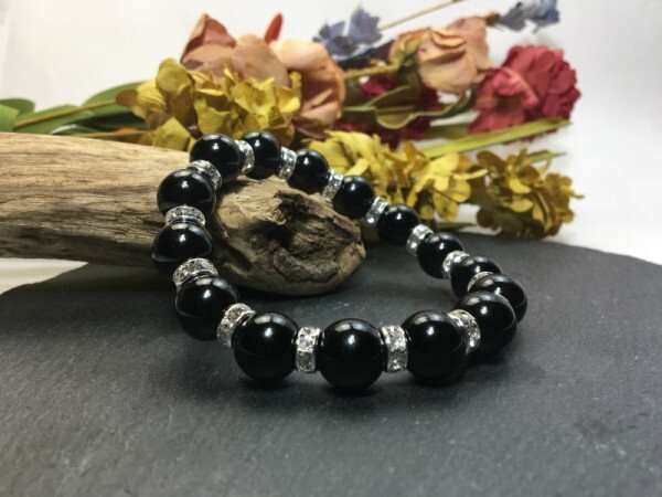 こちらは、12mm玉のオニキスを使用した天然石ブレスレットです。石との間にはロンデルを挟み高級感を演出しています。シンプルなデザインですのでどんなコーディネートとも合わせ易いブレスレットです。石大きさは12mm玉です。内径約18cmです。(サイズ変更の場合は取引ナビにてご連絡をお願いします。) 数に限りがございますので気になる方はお早めにどうぞ。