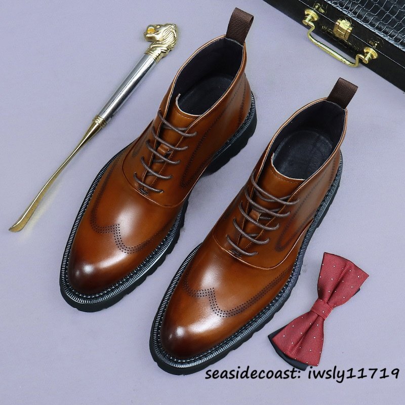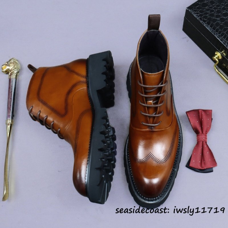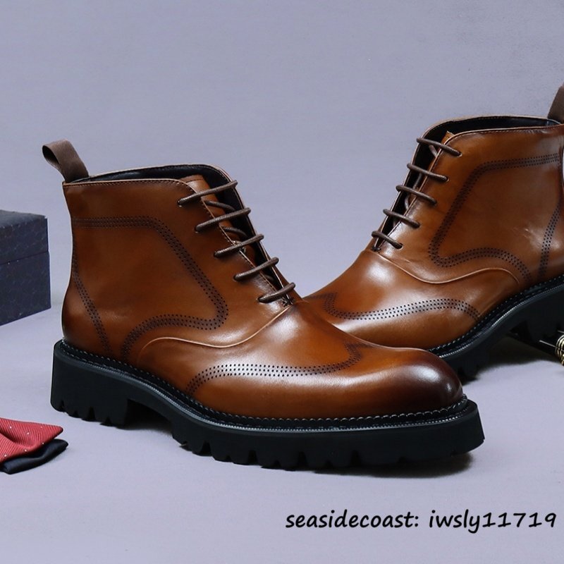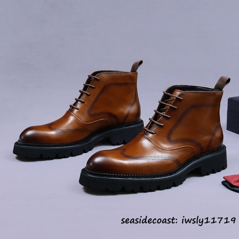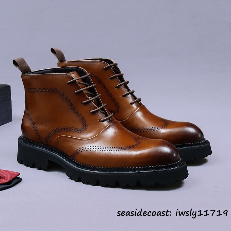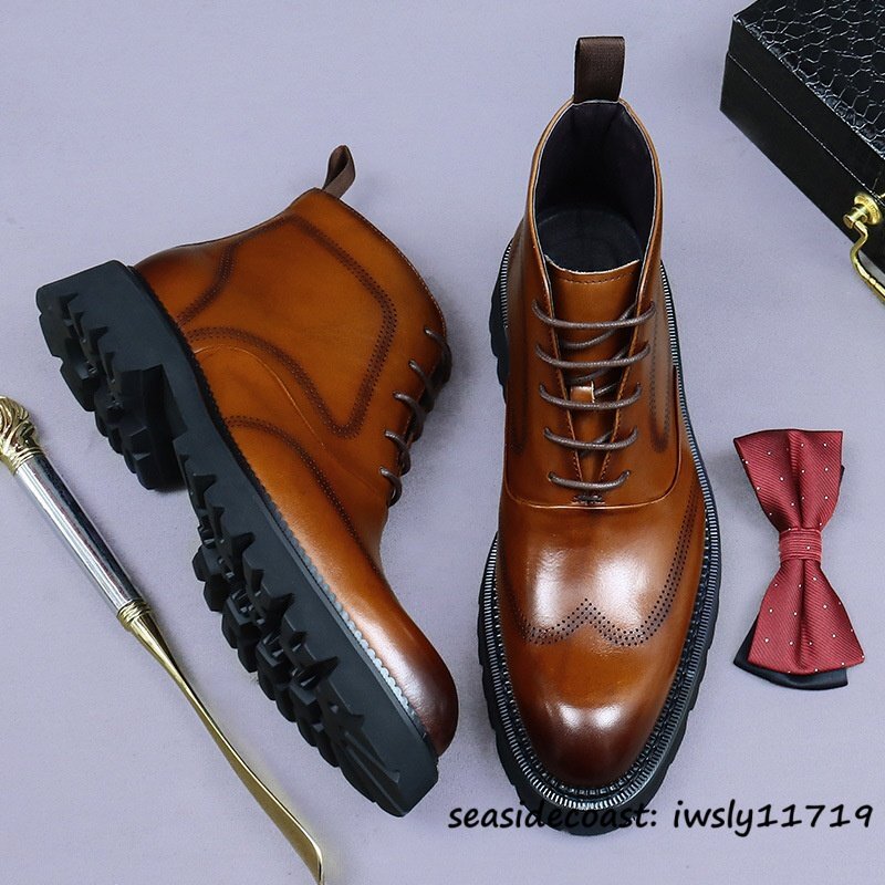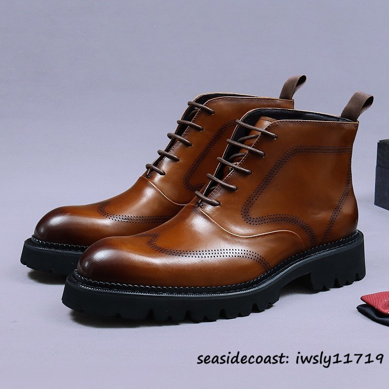 入手困難*13万 マーティンブーツ メンズ バイクブーツ 本革 職人手作り イギリス風 ショートブーツ 高級牛革 レザーブーツ ブラウン 24.5cm