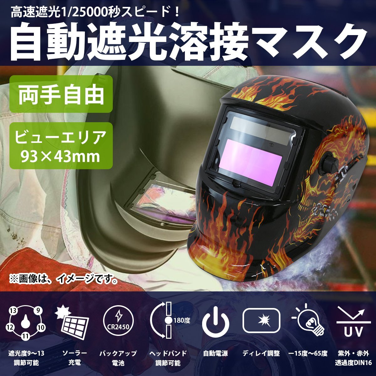 自動遮光 溶接マスク 溶接面 遮光速度1/30000秒 遮光#9-13 ソーラー充電 アーク TIG MAG MIG 溶接 液晶フルター ヘルメット
