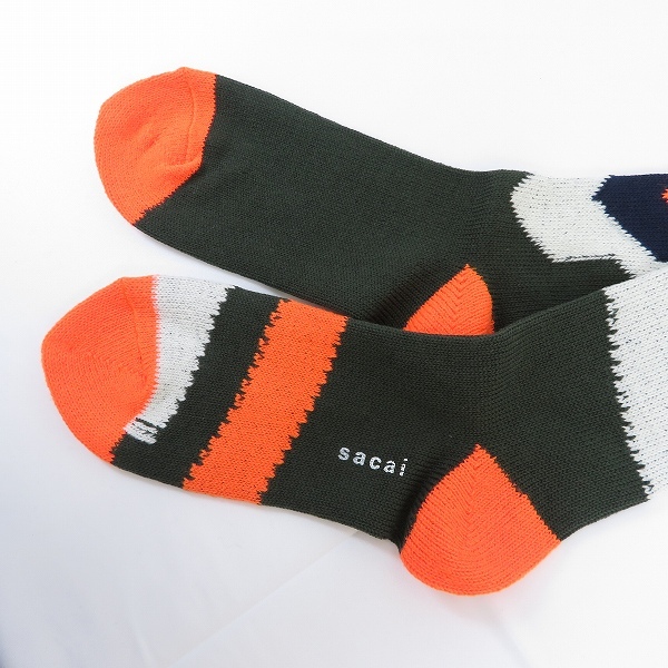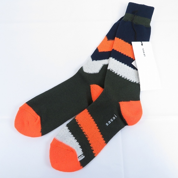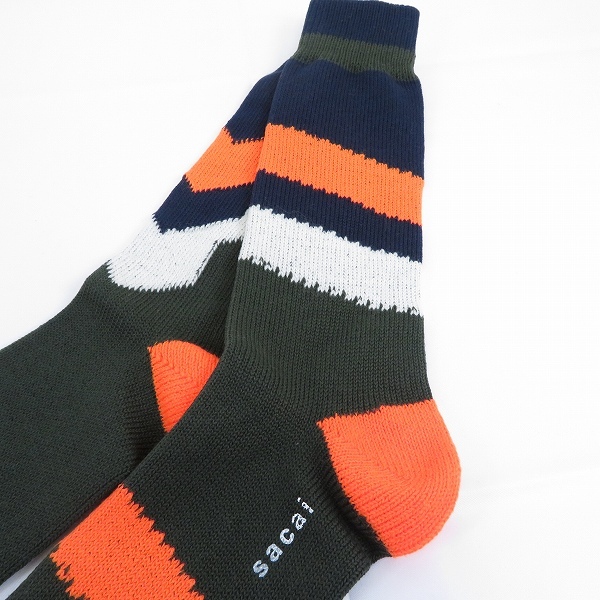 #ae サカイ sacai ソックス 靴下 サイズOS 紺 オレンジ 白 カーキ ボーダー 配色 タグ付き 新品同様 レディース 厚手 945919 k01