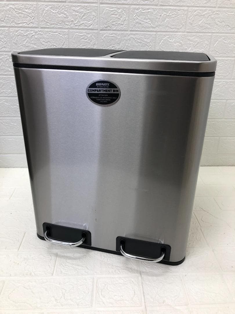 ステンレス製のスタイリッシュなペダル式ごみ箱。