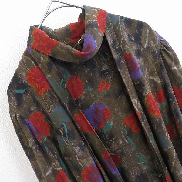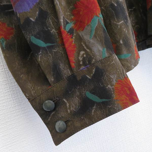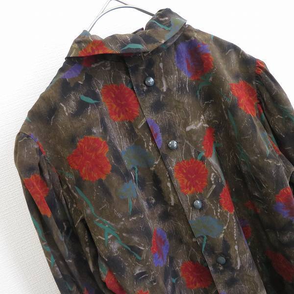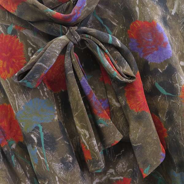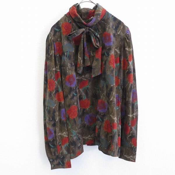 ウンガロ Ungaro シルク シャツ ブラウス バックボタン ボウタイ 花柄 総柄 a943647