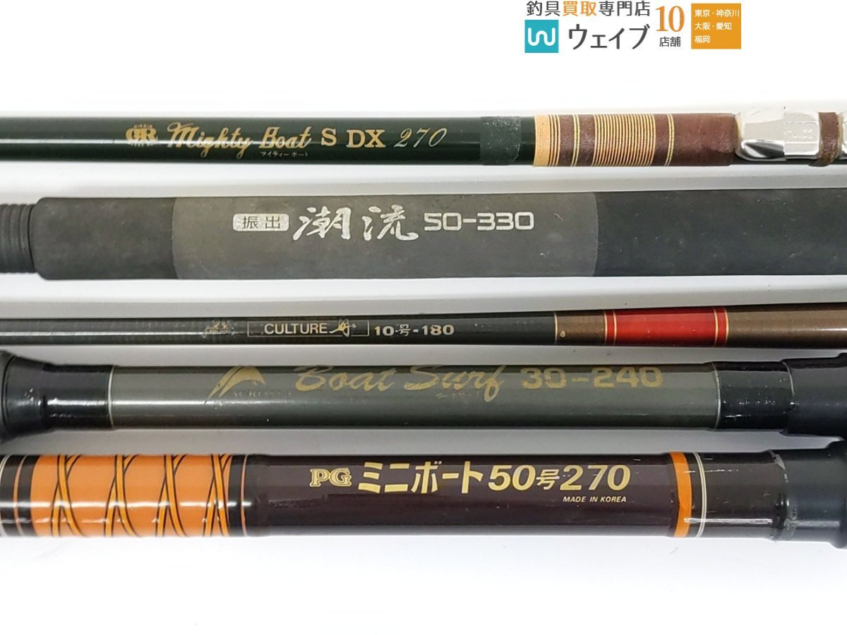 | 商品名 | ダイワ PG ミニボート 50号270・ニッシン マイティーボートSDX 270・アクロス ボートサーフ 30-240 他 計5点 船竿セット |