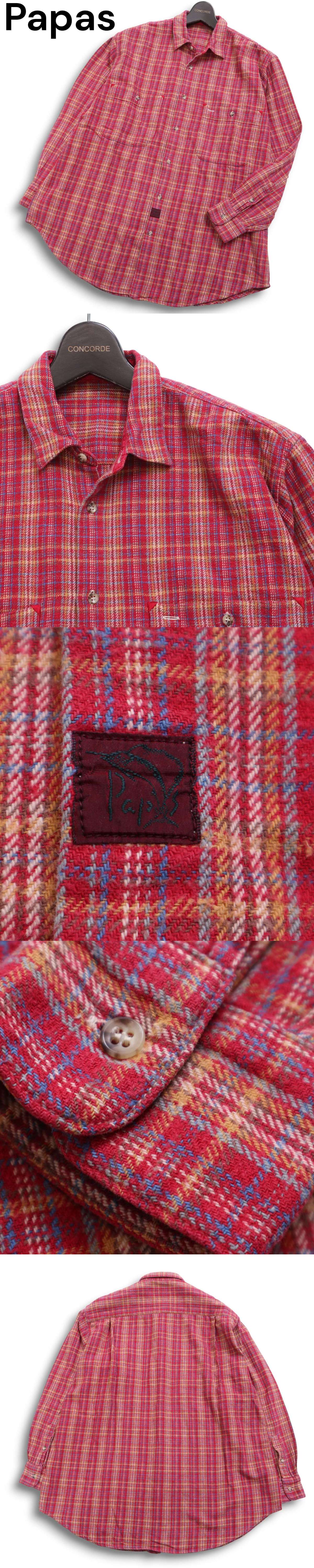 Papas パパス 秋冬 ロゴタグ★ 長袖 チェック ネル シャツ Sz.M メンズ