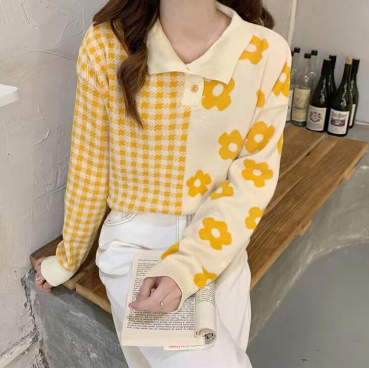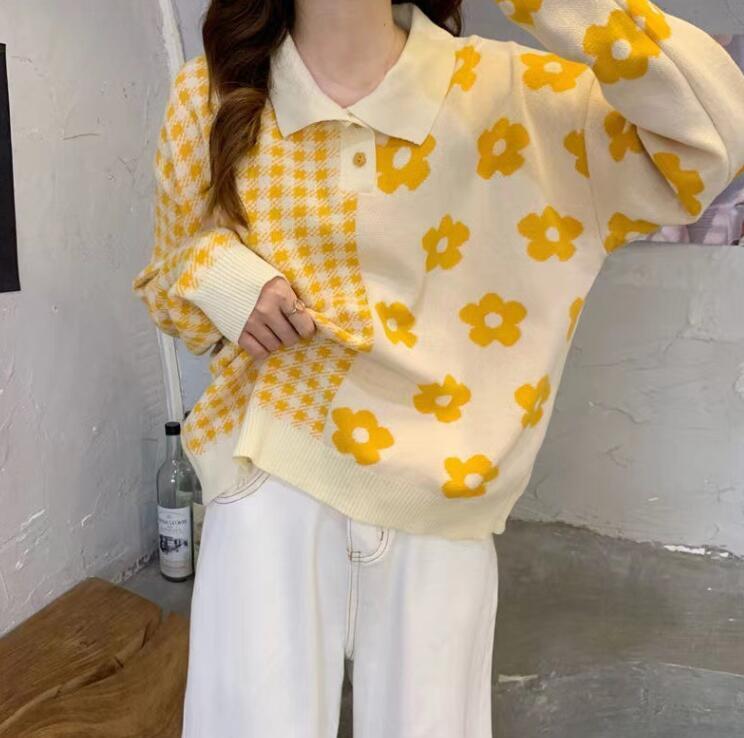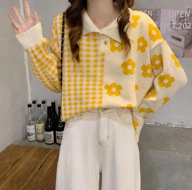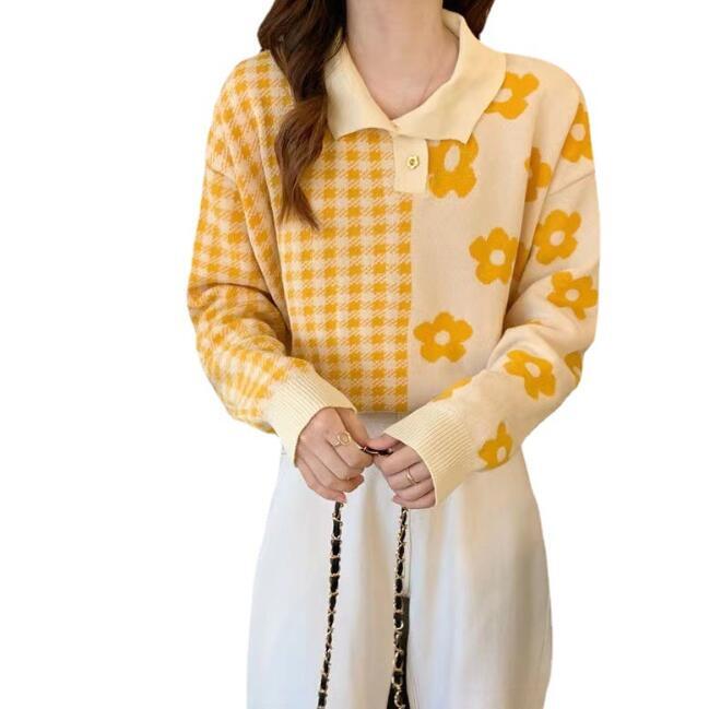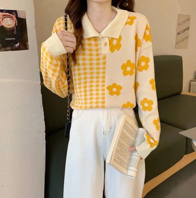 上質ニット 厚手 長袖 バイカラー 体型カバー 着痩せ カットソー sweet系
