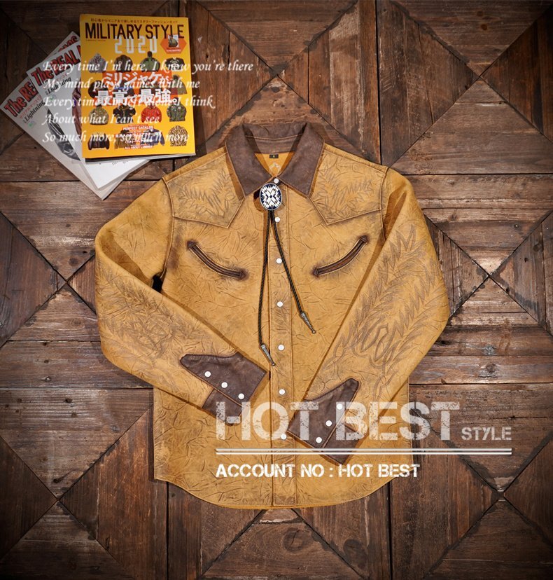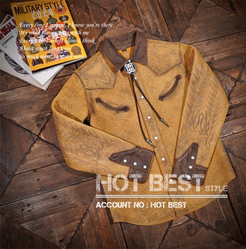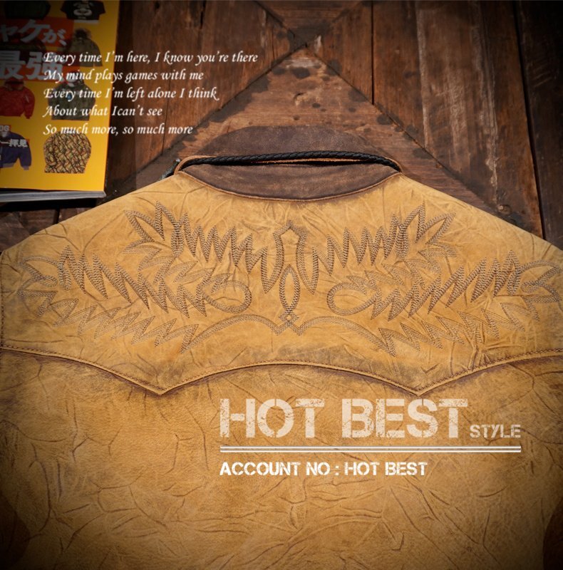 カウハイド シャツタイプ 刺繍 メンズ 革ジャン ヴィンテージ ライダース レザージャケット 牛革 Y1429/S~3XLサイズ指定可