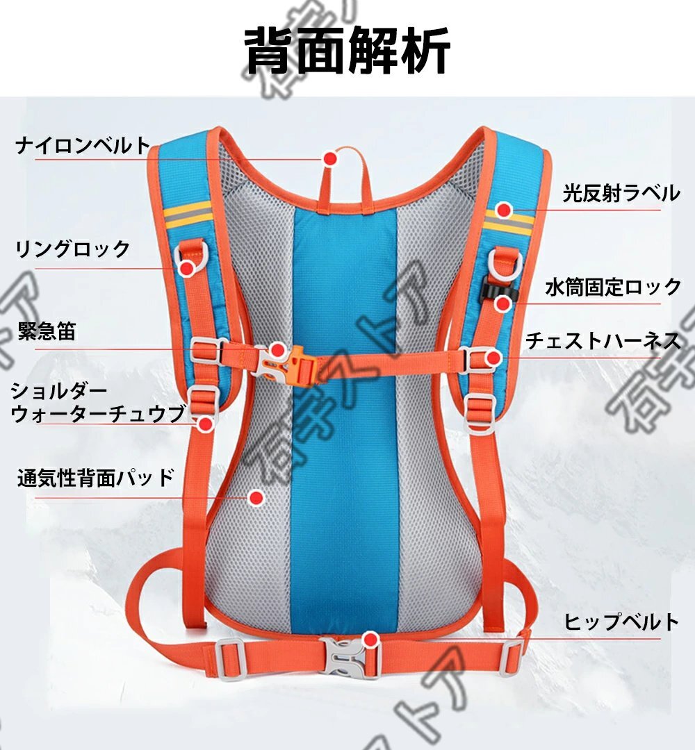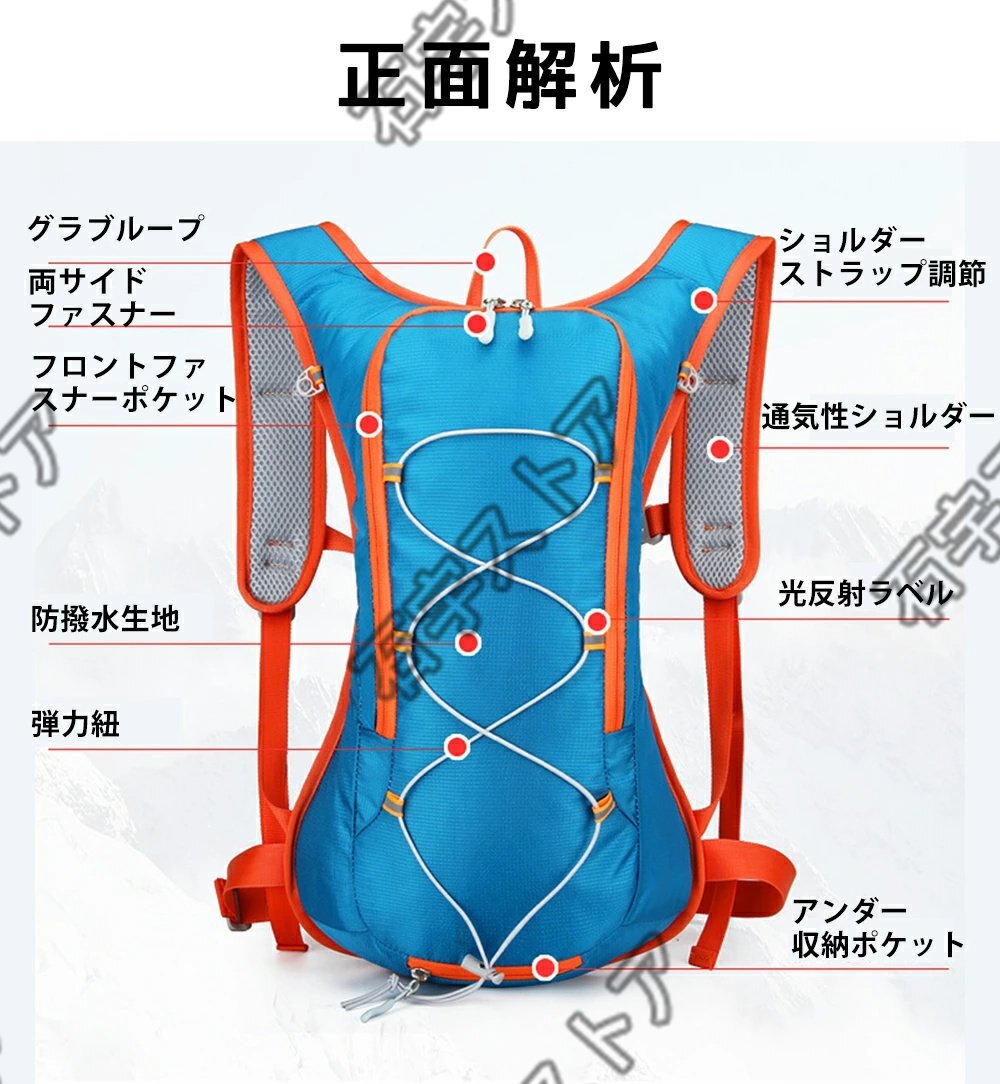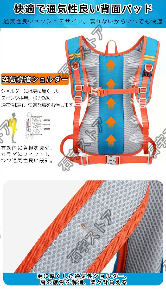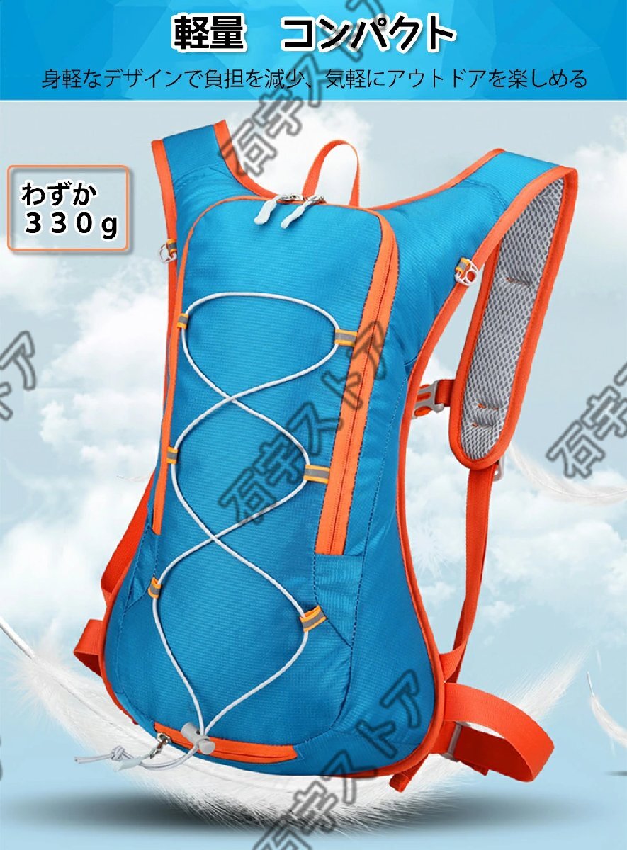 サイクリングバッグ 給水袋 ランニングリュック 超軽量 10L大容量 防水ナイロン 通気 メッシュショルダー マラソン ブルー shw203.bl