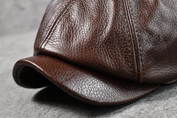 本革 レザー キャスケット ハンチング 帽子 メンズ キャップ あしたのジョー おしゃれ 皮製 7987327 ダークブラウン 新品 1円 スタート