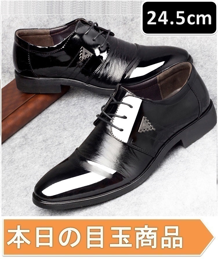 1スタ ☆ メンズ ビジネス レザー シューズ ブラック サイズ 24.5cm 革靴 靴 カジュアル 屈曲性 通勤 軽量 柔らかい 新品 【apa-158】