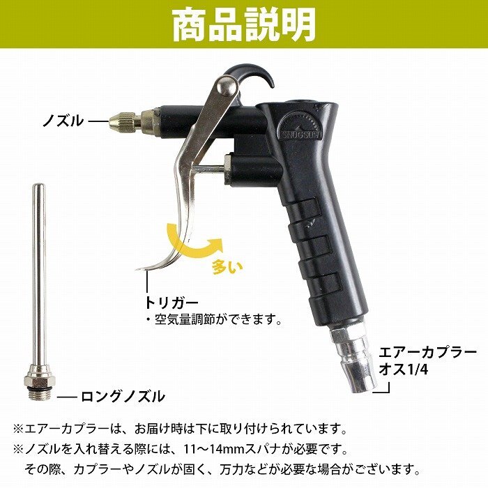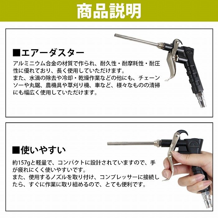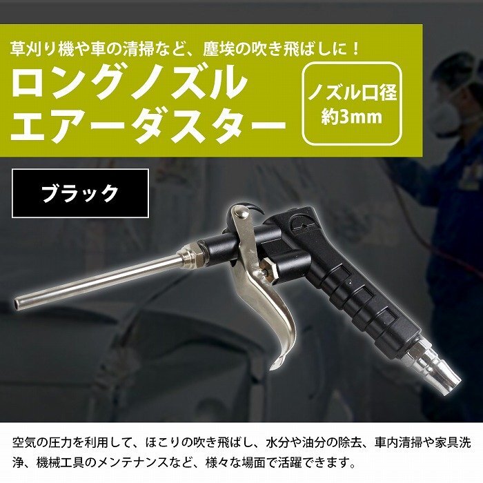 エアーダスター ガン 90mmノズル付 エアー ブロー 車内 清掃 洗浄 洗車 乾燥 エア ガン クリーナー 埃 飛ばし ブラック 黒