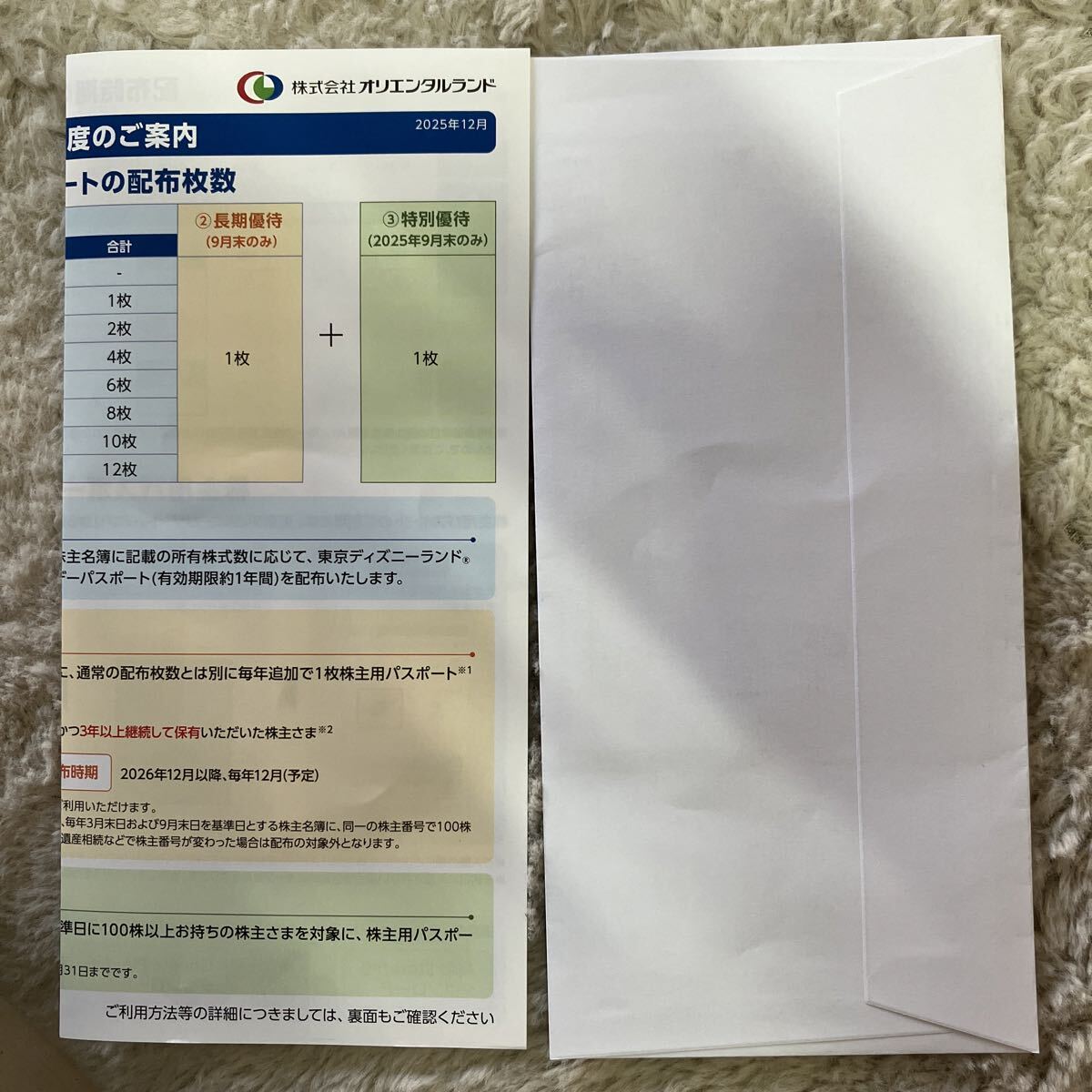オリエンタルランド株主優待1デーパスポート 1枚です。東京ディズニーランド及び東京ディズニーシーどちらかのパークに入園可能。入場には事前予約が必要です。