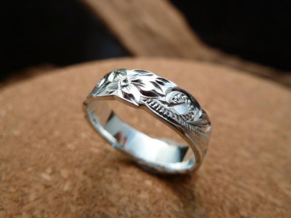 ◆デザイン紹介 本場ハワイから直輸入したハワイアンジュエリーのシルバーリングです。 リング一周にプルメリアと波がモチーフになった彫刻が綺麗にデザインされています。 ギフトに大人気のデザインで、ペアリングやピンキーリングとしてもオススメです。 ◆GIFTラッピング 300円 プレゼント用のラッピングをご希望の方は落札後ご連絡ください。 ◆ネーム彫り 1個 500円 リング、ペンダントへのネーム彫りをご希望の方は落札後ご連絡ください。 1文字づつ手彫りで彫刻しますので書体の指定はできません。(筆記体不可) 大文字、小文字、数字の組み合わせは可能ですがアイテムにより入れられる文字数が変わってきます。 コメント欄にご希望の文字列を明記ください。 例: k to t 21.2.25 (11文字) ペアネックレスの場合はどちらか片方に彫って500円、両方に彫る場合は1000円になります。 なおデザイン上彫刻が不可能の場合もありますのであらかじめご了承下さい。 | ||||||||||||||||||||||||||||||||||||||||||||