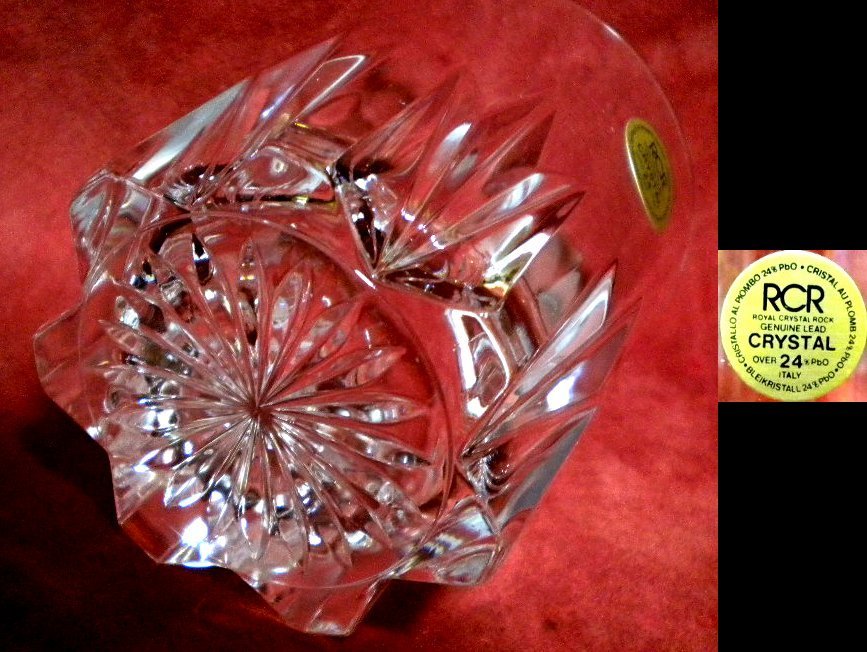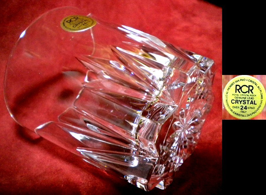 売切 アンティーク 稀少 人気廃盤品 ロイヤル クリスタル ロック オールド ロックグラス 纏購入特典有、底20菊紋、 容量:230cc 1客 イタリア製 未使用保管品 箱無 G/L、OVER 24% PbO 寸法:φ上75/下66×H82mm、重量:250g、口元:1.6mm、底厚さ:9mm、1980年代、 当時の押出し成形品のため写真10枚目の良品範囲のガラス流れが御座います。下側面です。アンティーク品をご理解いただき当時の製造技術で製造され検品を受けた良品範囲のお品ですが現代の規格品とは異なりますので、ご了解いただける方の御落札をお願いいたします。その分価格を下げております。・イタリアのトップクリスタルグラスメーカー、ロイヤル クリスタル ロック社(RCR社)の稀少な人気廃盤品ロックグラスです。底は20菊紋で、少し小ぶりですがオールドロックグラススタイルのオシャレなグラスです。化粧箱に入っていた未使用品ですが長期保管品です。了解して購入される方へ。・纏め購入特典:2点以上(他の商品可)纏めて購入頂ける場合、オークション出品の場合、ご希望の商品にご入札いただければ早期終了させて頂きます。質問からか、すでに御落札頂いている場合は取引連絡からご連絡ください。ご連絡頂き24時間以内のご入札が対象となります。表示金額で購入が出来、終了時間までの時間短縮になります。是非ご利用ください。・検品の為にぬるま湯で洗浄後、乾燥を行いクリスタルグラス特有の保管時の白化を防ぐために個別ラップを行っております。できる限り良好な状態でお手元に届くよう努めております。・発送は郵パックで御願いいたします。御住所確認後、送料を御連絡させていただきます。まとめ購入の場合、ご予定を取引ナビでご連絡いただければ、お取り置き後、同梱発送いたしますので宜しくお願いいたします。分類121F19 №0589