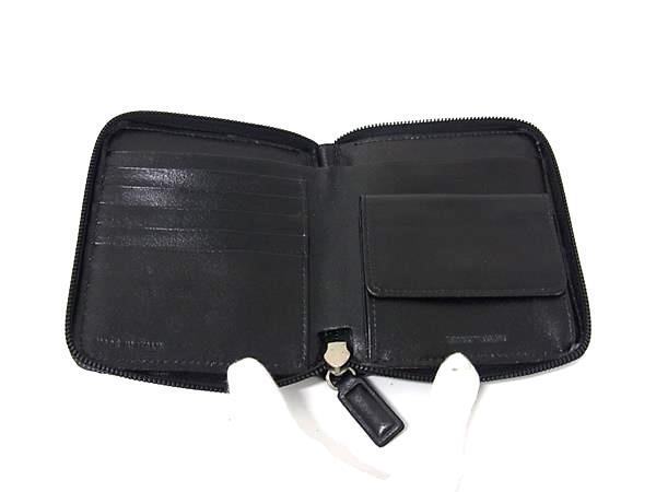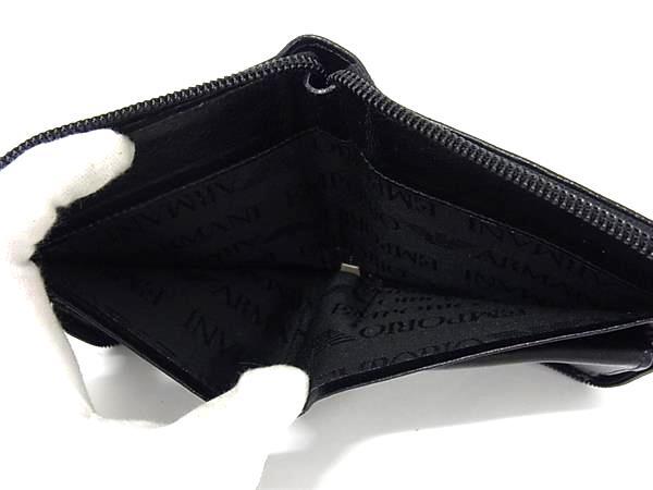 ■美品■ EMPORIO ARMANI エンポリオアルマーニ レザー ラウンドファスナー 財布 ウォレット 札入れ 小銭入れ ブラック系 DK6169