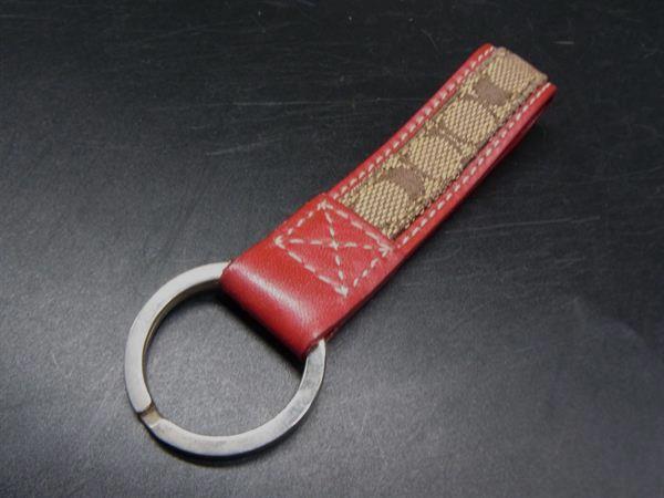 ■美品■ COACH コーチ シグネチャー キャンバス×レザー キーリング キーホルダー バッグチャーム ブラウン系×レッド系 DH8855