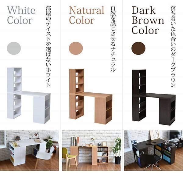 | 書棚ラックの組み換えができるシンプルなデスク。 仕事はもちろん、趣味などにも使える机です。 文庫本からA4のファイルまで収納できる棚付き。 部屋の雰囲気や自分の好みに合わせてレイアウト可能です。 |
