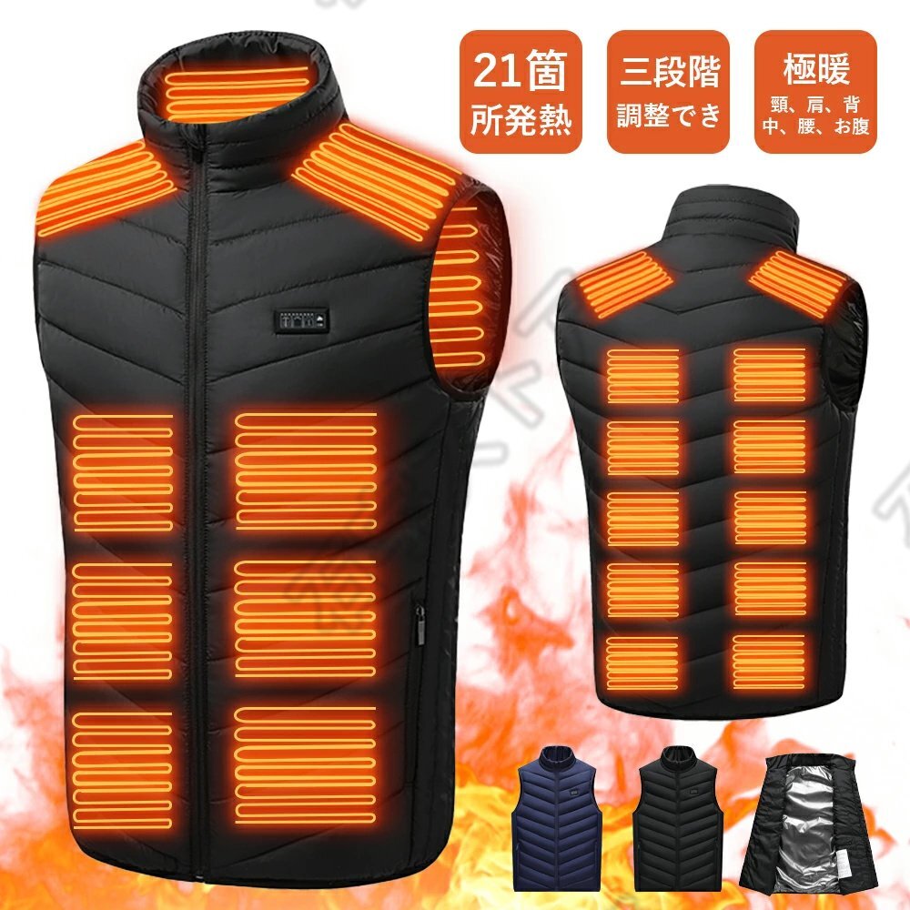 ★電熱ベスト 21箇所発熱 20000mAh モバイルバッテリー付き ヒーターベスト 作業着 インナー 3段温度調整 防寒着 USB給電 Mサイズ shw304.1