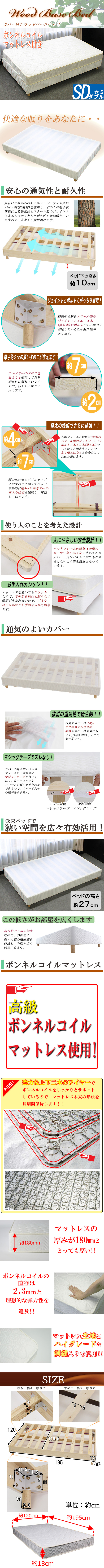 | 商品名 | ウッドベースベッド カバー付き ボンネルコイルマットレス付き 木製 ベッドフレーム ロータイプベッド 低床ベッド すのこベッド すのこ ベッド パイン材 フラット セミダブル cjs01bonsd |