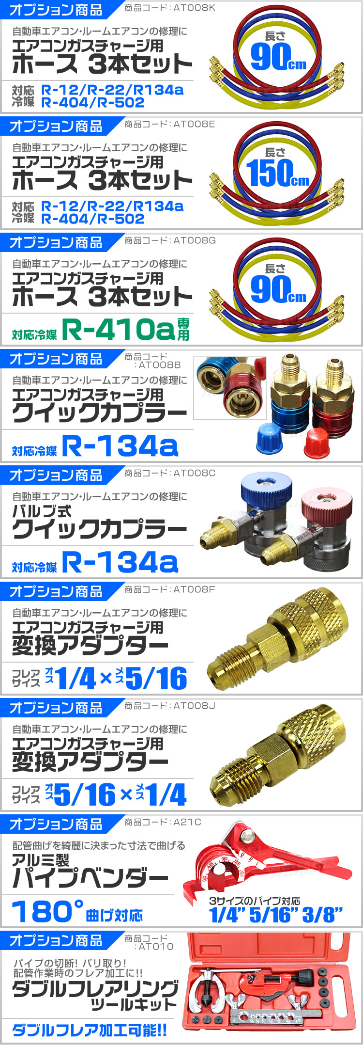 | ■ 対応冷媒 R134a R12 R22 R502 [AT008] |