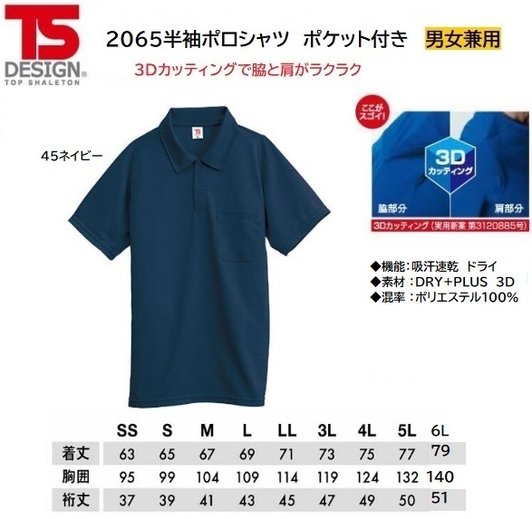 [ネコポス発送/1枚]★TSDESIGN 2065半袖ポロシャツ ポケット付き【45ネイビー・SSサイズ】定価3000程度の品、即決880円!!