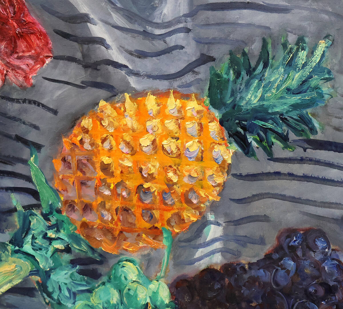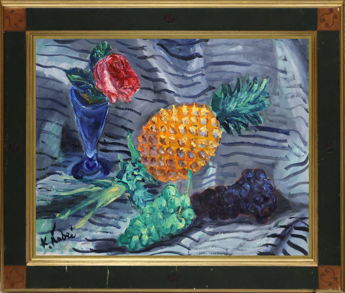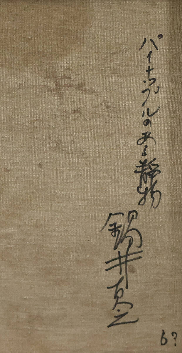画家:鍋井 克之 タイトル:パイナップルのある静物 技法:キャンバスに油彩 画面サイズ:P10号 額サイズ:53×66㎝ サイン:左下にサイン 裏にタイトル・サイン コンディション:概ね良好(若干ヒビがあります)。 鍋井 克之 (なべい かつゆき) 旧姓:田丸 1888年 大阪府出身 1908年 白馬会原町洋画研究所で長原孝太郎にデッサンを学ぶ 1909年 東京美術学校(現・東京藝術大学)入学 小出楢重と同級生となる 黒田清輝・岡田三郎助に師事 1914年 第1回二科展入選(以降、毎年出品) 1915年 東京美術学校卒業 二科展二科賞受賞(同、18年) 1918年 二科会会友に推挙 1922年 渡仏(~'23年) 1923年 二科会会員に推挙 1924年 小出楢重、黒田重太郎らと共に信濃橋洋画研究所を開設 二科展で滞欧作が特別陳列される 1925年 雑誌「マロニエ」を創刊し、小出楢重らと編集にあたる 1931年 信濃橋洋画研究所を移転、中之島洋画研究所と改称する 1933年 個展開催(東京紀伊国屋) 1939年 中国に写生旅行 1940年 紀元2600年奉祝天術展覧会に出品 1943年 文展招待出品 1947年 中川紀元、宮本三郎らと二紀会を結成(以降、毎年出品) 1949年 個展開催(東京日本橋) 1950年 日本芸術院賞受賞 1951年 小磯良平らと「風流座」を結成 二紀展5周年特別陳列として戦前の作品が展示される 1952年 日本国際美術展に出品 1953年 個展開催(大阪梅田画廊) 1954年 個展開催(銀座松坂屋) 1955年 個展開催(大阪梅田画廊) 1958年 大阪市民文化賞、なにわ賞受賞 個展開催(大阪・東京高島屋) 1959年 記念作品展開催(大阪・東京高島屋) 1960年 池田市名誉市民となる 個展開催(大阪三越) 1961年 個展開催(東京三越/大阪高島屋) 1962年 個展開催(大阪三越) 1964年 大阪芸術大学教授、芸術学部長に就任 1965年 東京国立近代美術館「小出楢重展」で講演会開催 1966年 画業60年回顧展開催(東京・大阪三越) 自選展開催(大阪梅田画廊) 画集刊行「鍋井克之」(美術出版社) 1967年 個展開催(東京梅田画廊/東京・大阪三越) 二紀会名誉会員に推挙 1969年 没(享年81歳) 勲三等瑞宝章を受章 二紀展にて遺作が特別陳列される 「鍋井克之遺作展」(大阪市立美術館・朝日新聞社)開催 1973年 「小出楢重・鍋井克之展」開催 2001年 「鍋井克之展」開催(田辺市立美術館) 所蔵/東京国立近代美術館、兵庫県立近代美術館、東京都現代美術館、 群馬県立近代美術館、愛知県美術館、大阪市立美術館、京都市美術館、 平塚市美術館、福岡市美術館、他 |