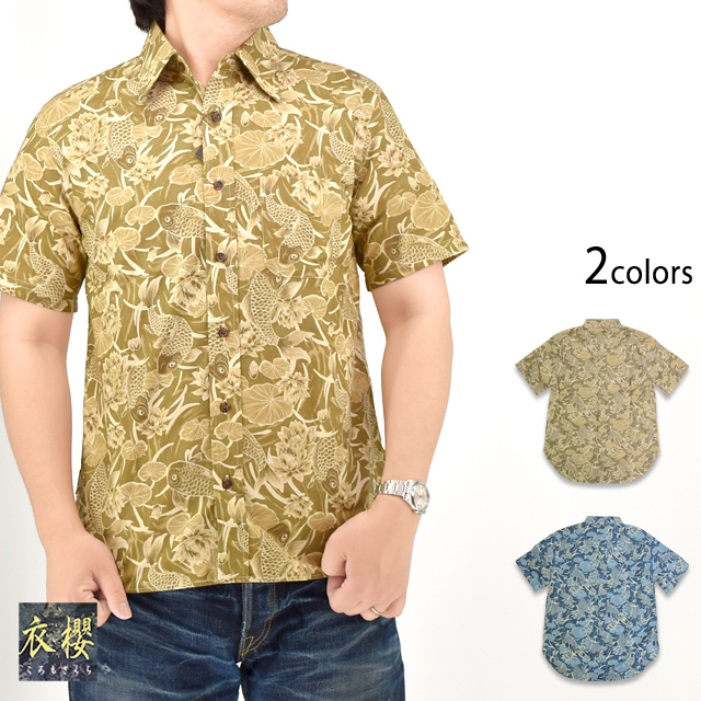 | 半袖レギュラーカラーシャツ「蓮鯉」◆衣櫻 KSK-M09611 | |||||||||||||||||||||||||