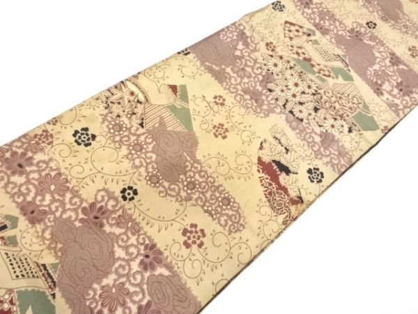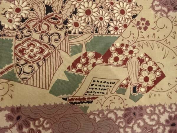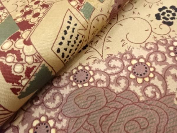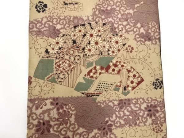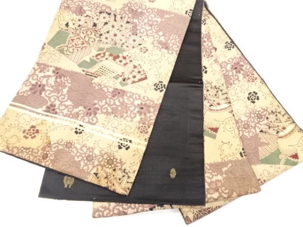 ys7393193; 茶道具に草花模様昼夜帯(材料)【アンティーク】【着】