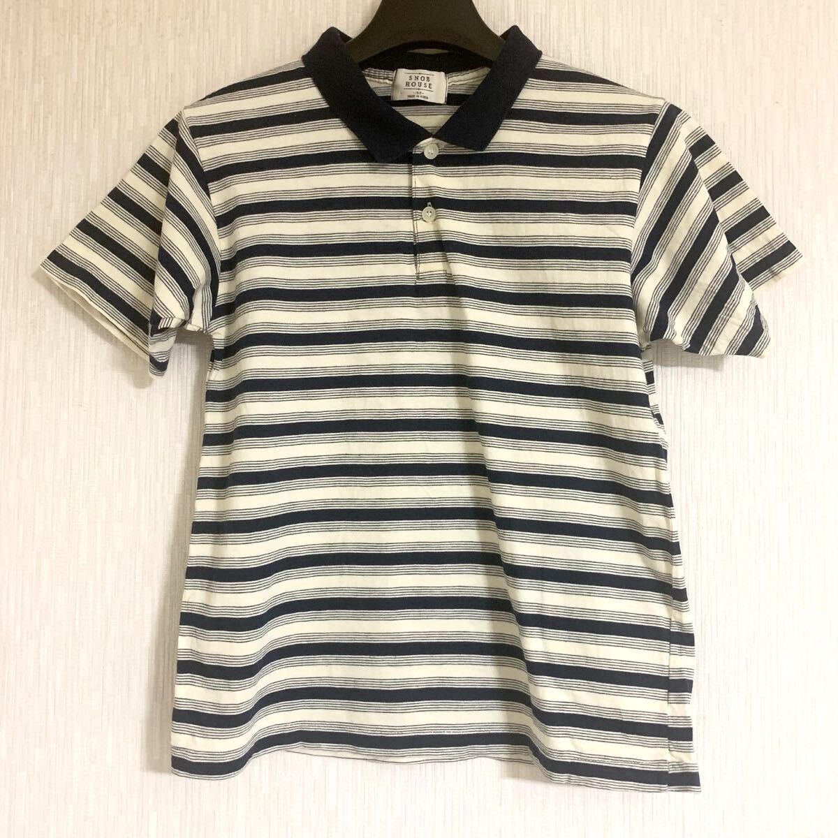 マルチボーダーのシンプルな衿つきのTシャツ。