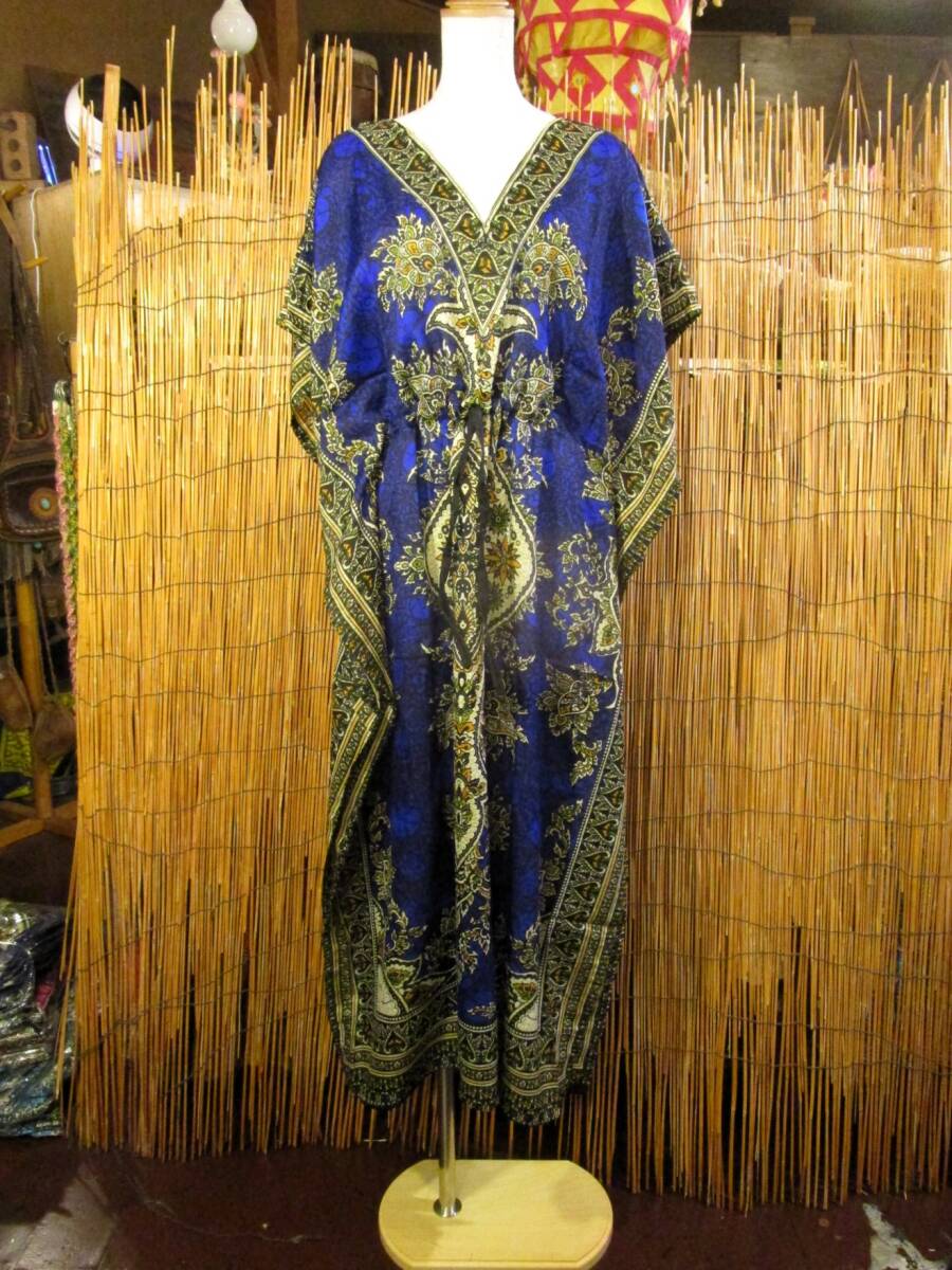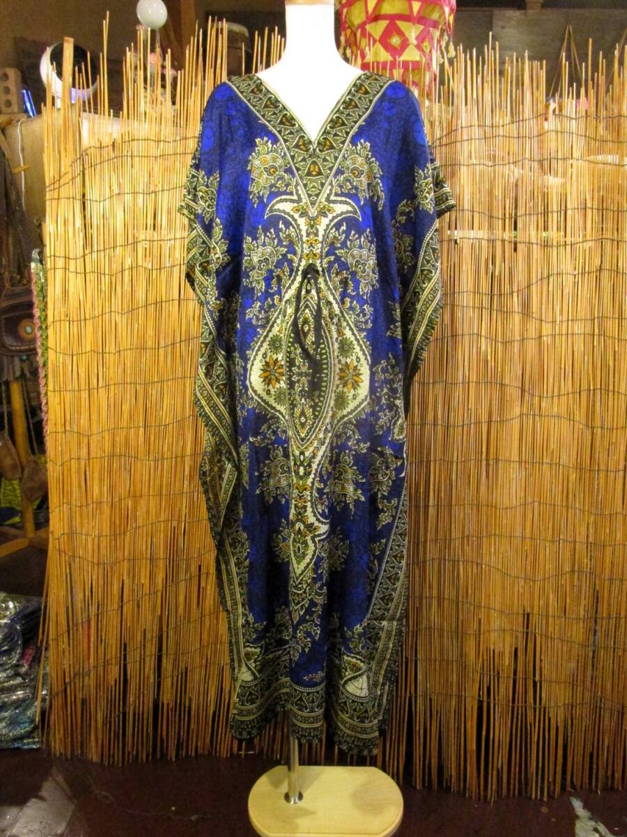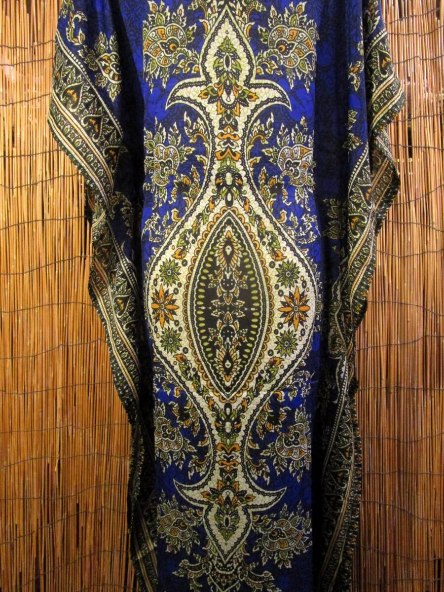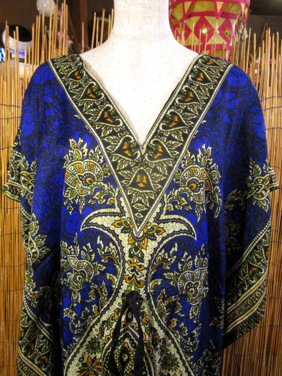 ⑱新品*薄手ビスコース素材*ゆったりサイズ *アジアンプリント*ガラベーヤ*ポンチョ風*マキシ丈*ワンピース*ベリーダンス