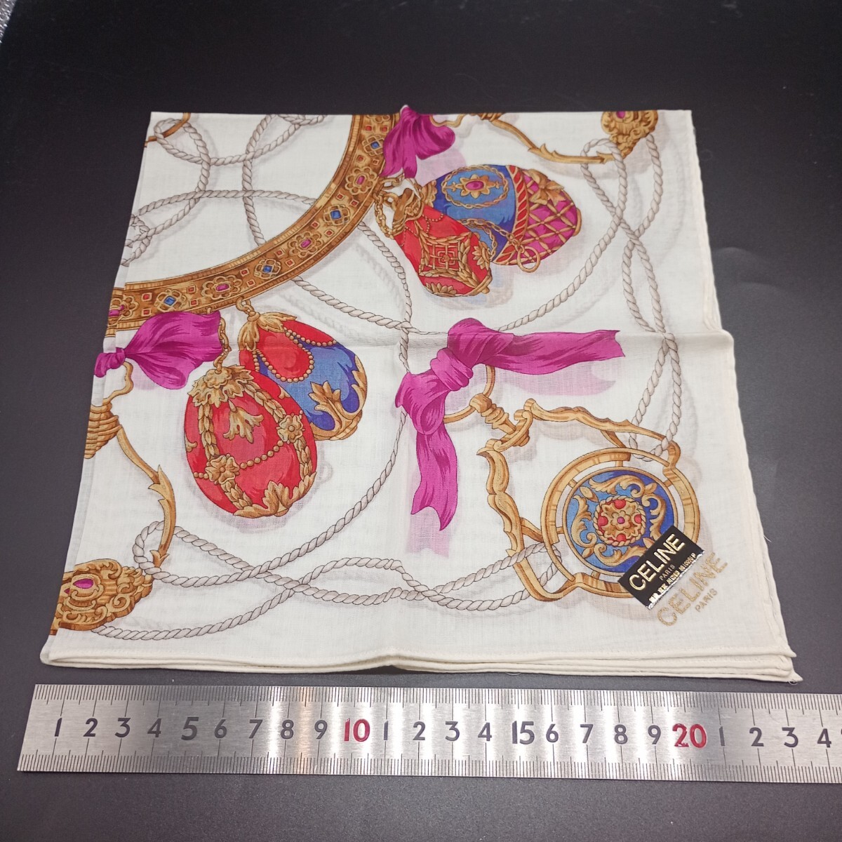 CELINE セリーヌ ハンカチ ホワイト ロープ 飾り パープルリボン no.3018