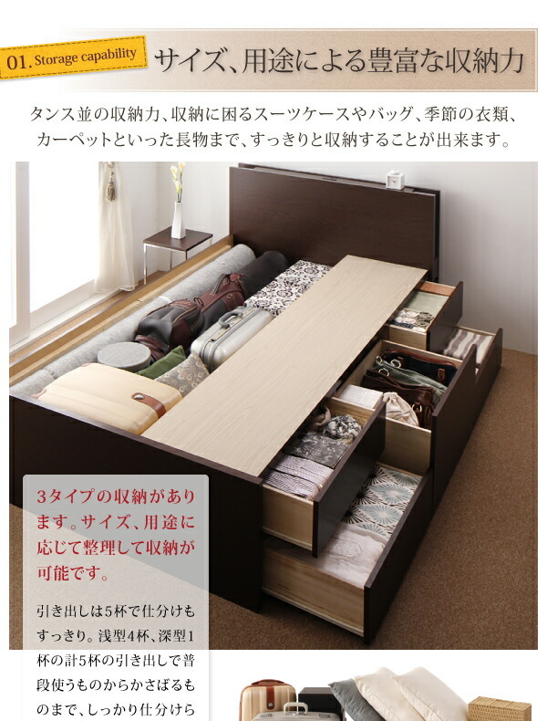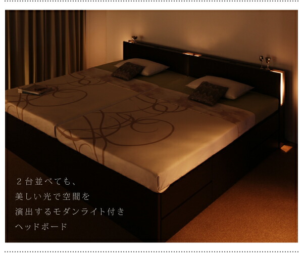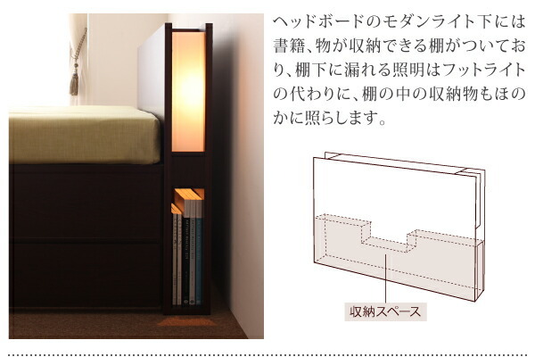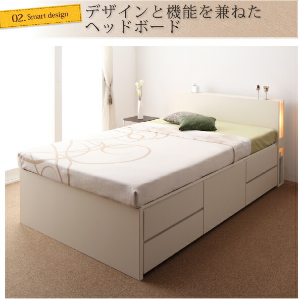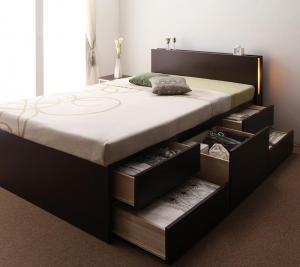 お客様組立 モダンライト・コンセント付きチェストベッド 薄型スタンダードボンネルコイルマットレス付き セミダブル