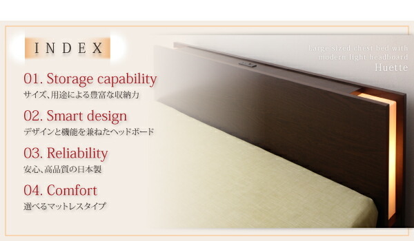 お客様組立 モダンライト・コンセント付きチェストベッド Huette ヒュッテ 薄型スタンダードボンネルコイルマットレス付き セミダブル【フレームカラー:ダークブラウン】です。