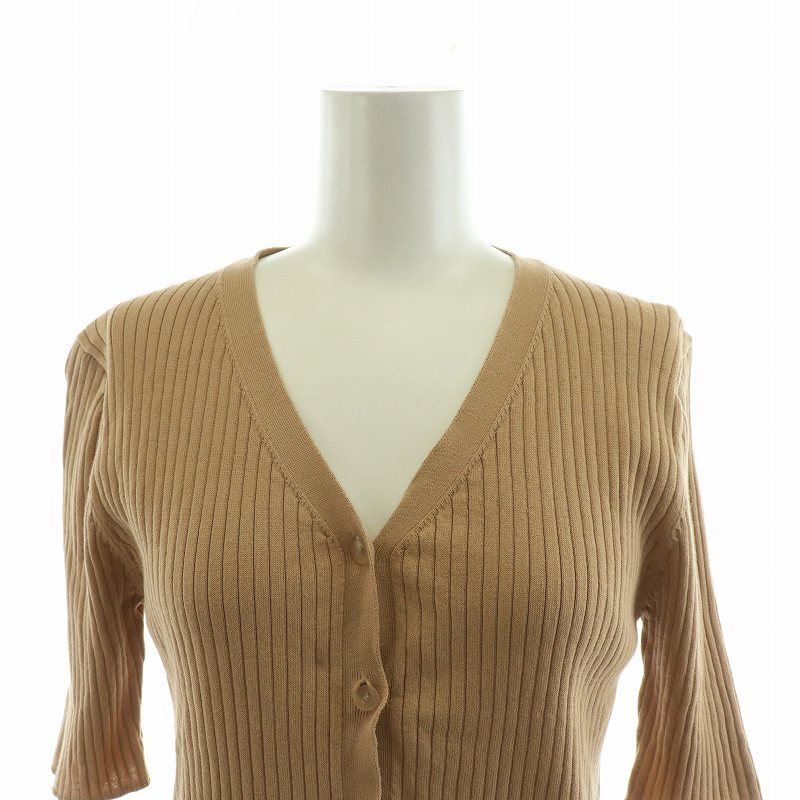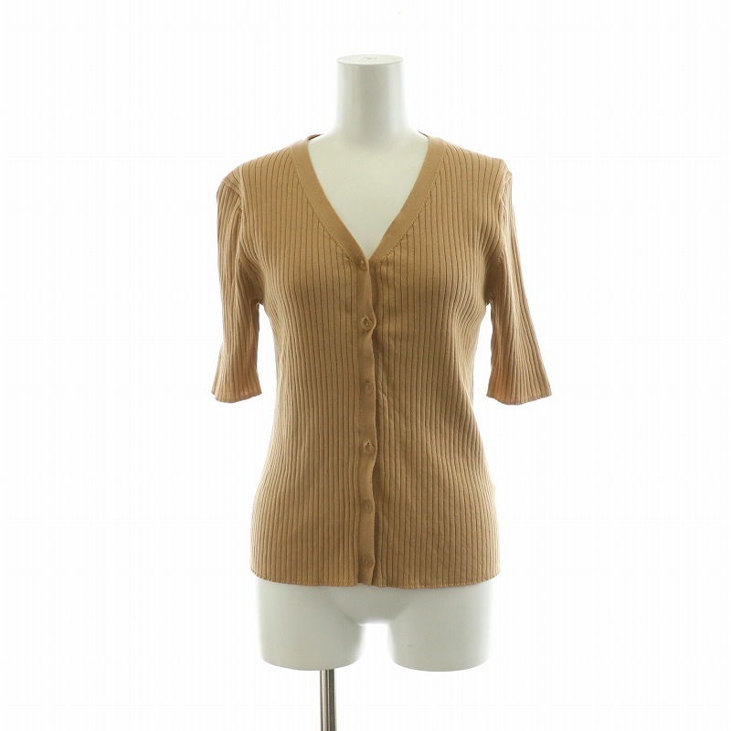 ナチュラルビューティーベーシック NATURAL BEAUTY BASIC カーディガン リブニット 半袖 M ブラウン 017-9175435 /NQ ■MA レディース