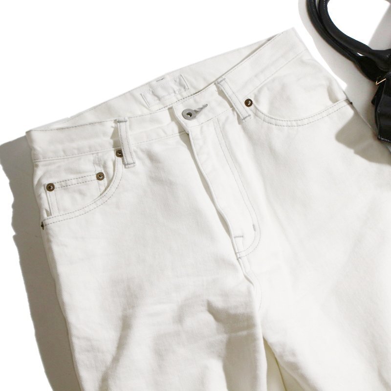 12.5ozデニムを使用したコクーンシルエットの5ポケットパンツです。 裾にかけてややコクーンにカットしたシルエットがお洒落、 ウエストイン、メッシュニットやシャツなどを合わせたアウトスタイルもお勧めです。 手洗い可、透け感なし、グレーのステッチが新鮮です。