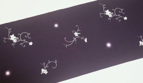 | 【京わぎれ】東レ シルック ちりめん小紋 はぎれ ホタルぼかしにブドウ唐草文様 濃い紫色地 約5m ① | ||||