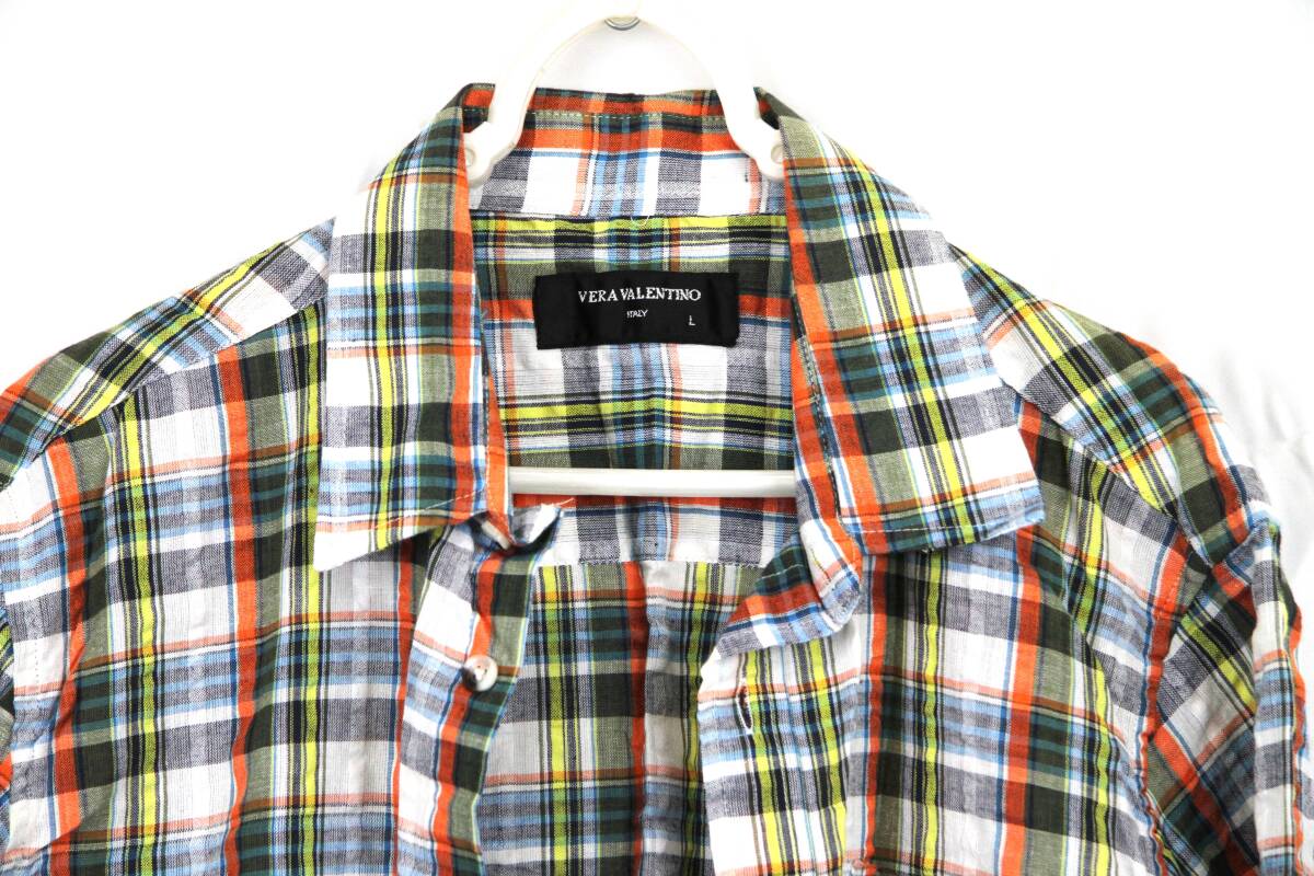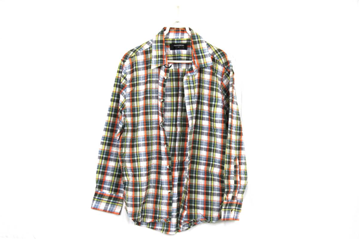 F-0061 VERA VALENTINO チェック柄 ロングシャツ Lサイズ
