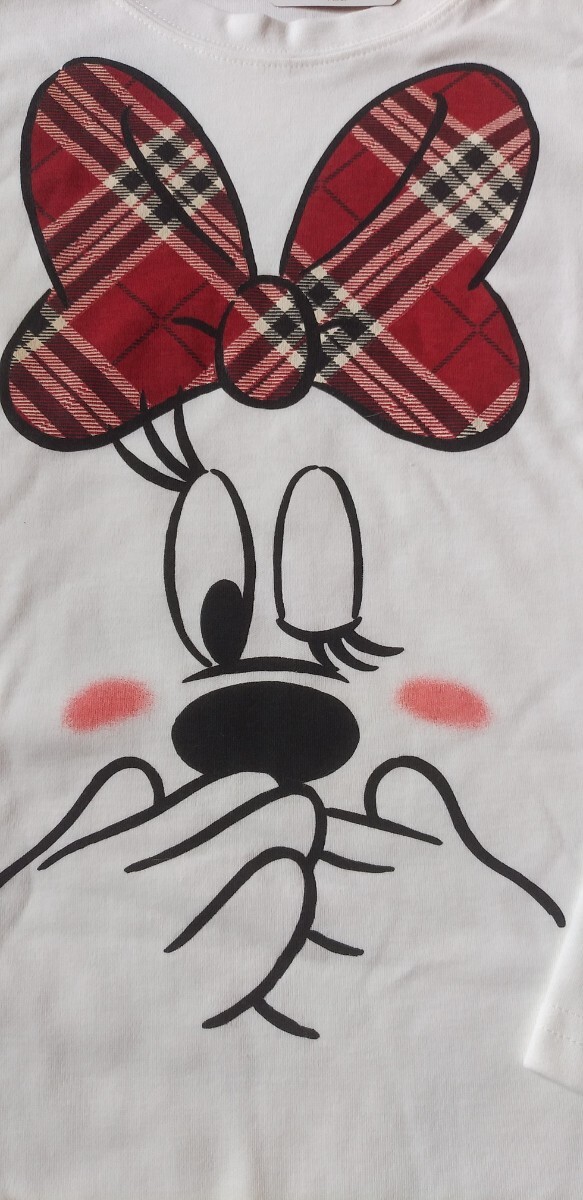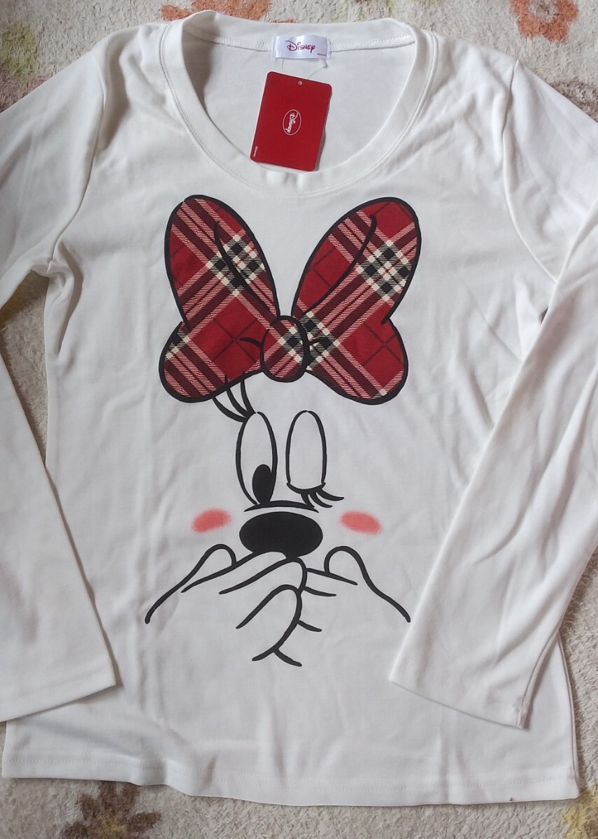 ミニーマウスのプリントが可愛い長袖Tシャツとロングパンツのセット。