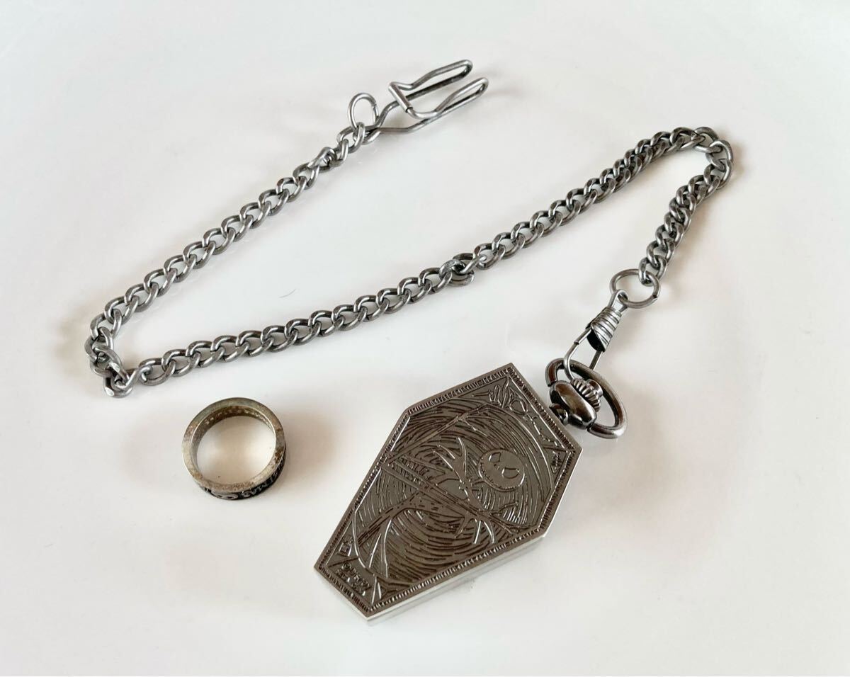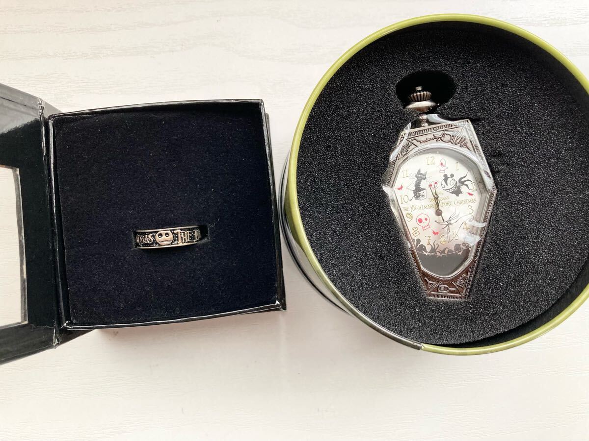 こちら2019年アミューズメント専用景品の缶付きプレミアム懐中時計と、リング(10号)のセットになります。リングは元々ヴィンテージデザインで、シルバー925メッキと箱裏に記載されてます。