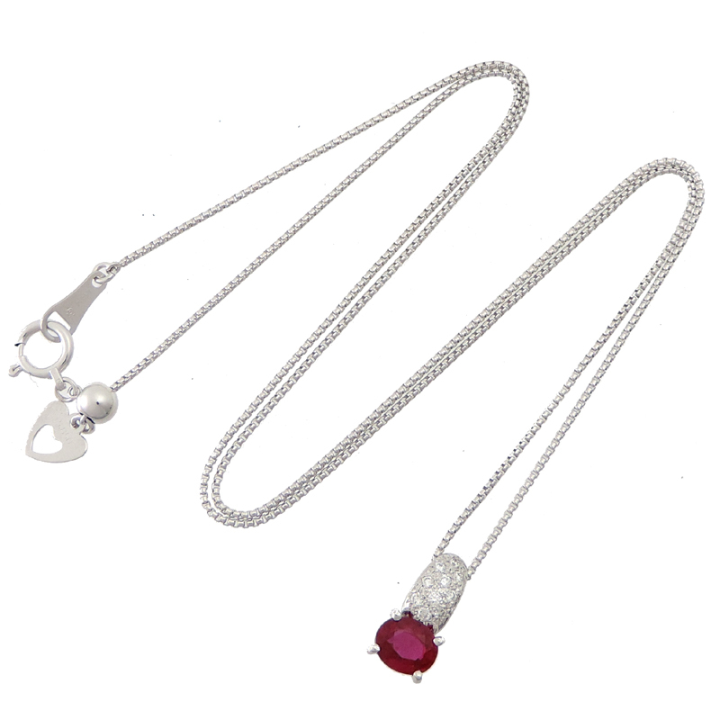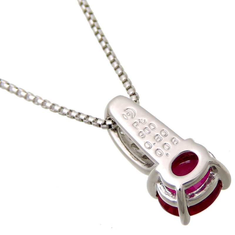 | 品名 | 0.80ct ルビー 0.08ct ダイヤモンド ネックレス Pt900プラチナ レッド |