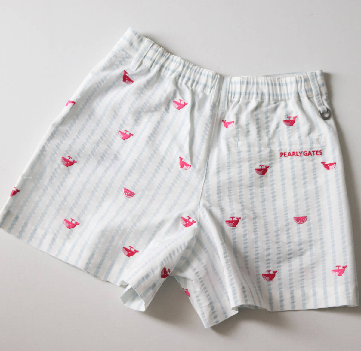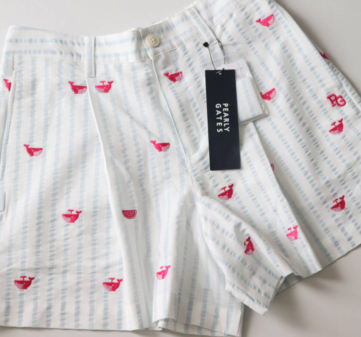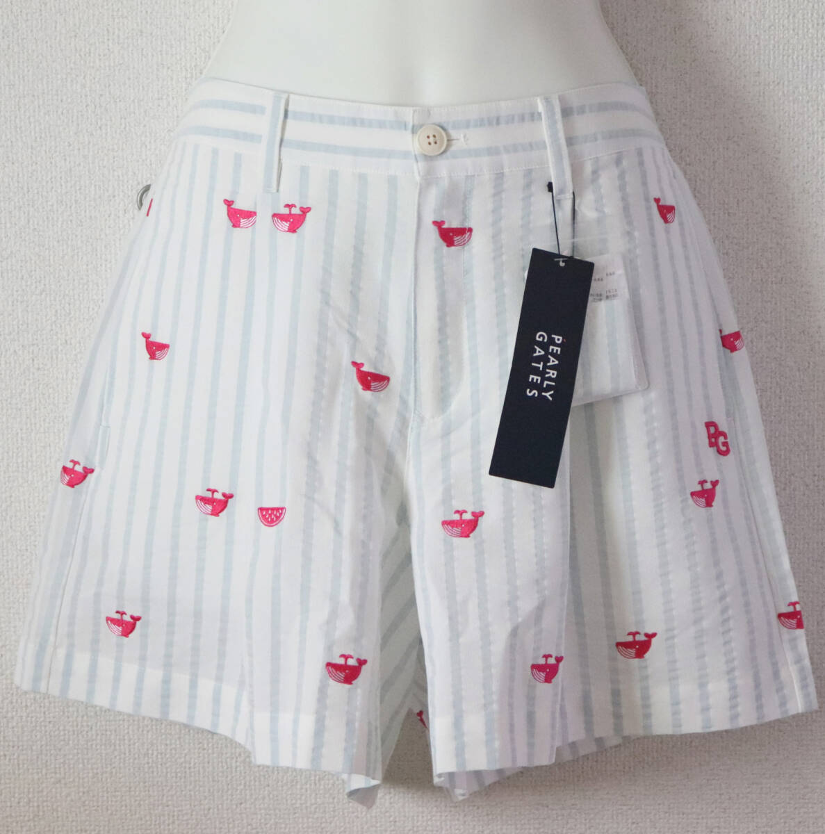 | 30,800円新品タグ付き【PEARLY GATES パーリーゲイツ】ストレッチ クジラ刺繍 キュロットショートパンツ 1(w72-82) v6933 |