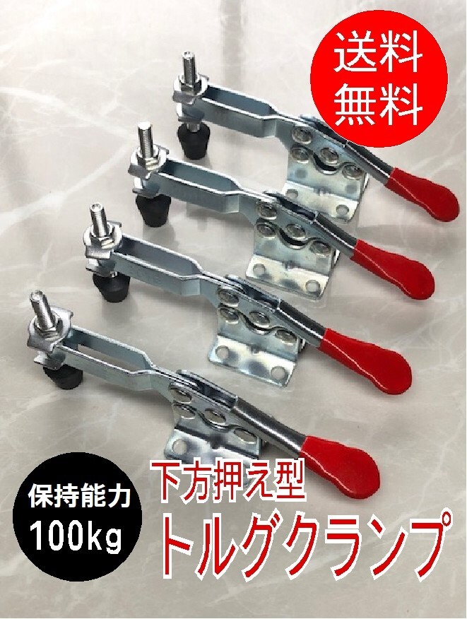 ●【ワンタッチで固定】木材や金属の固定に便利な下方押え型のトグルクランプ4個セットです。トルグクランプ本体を固定し、赤いハンドルを下げてクランプを水平にするだけで対象物をしっかりと固定できます。
