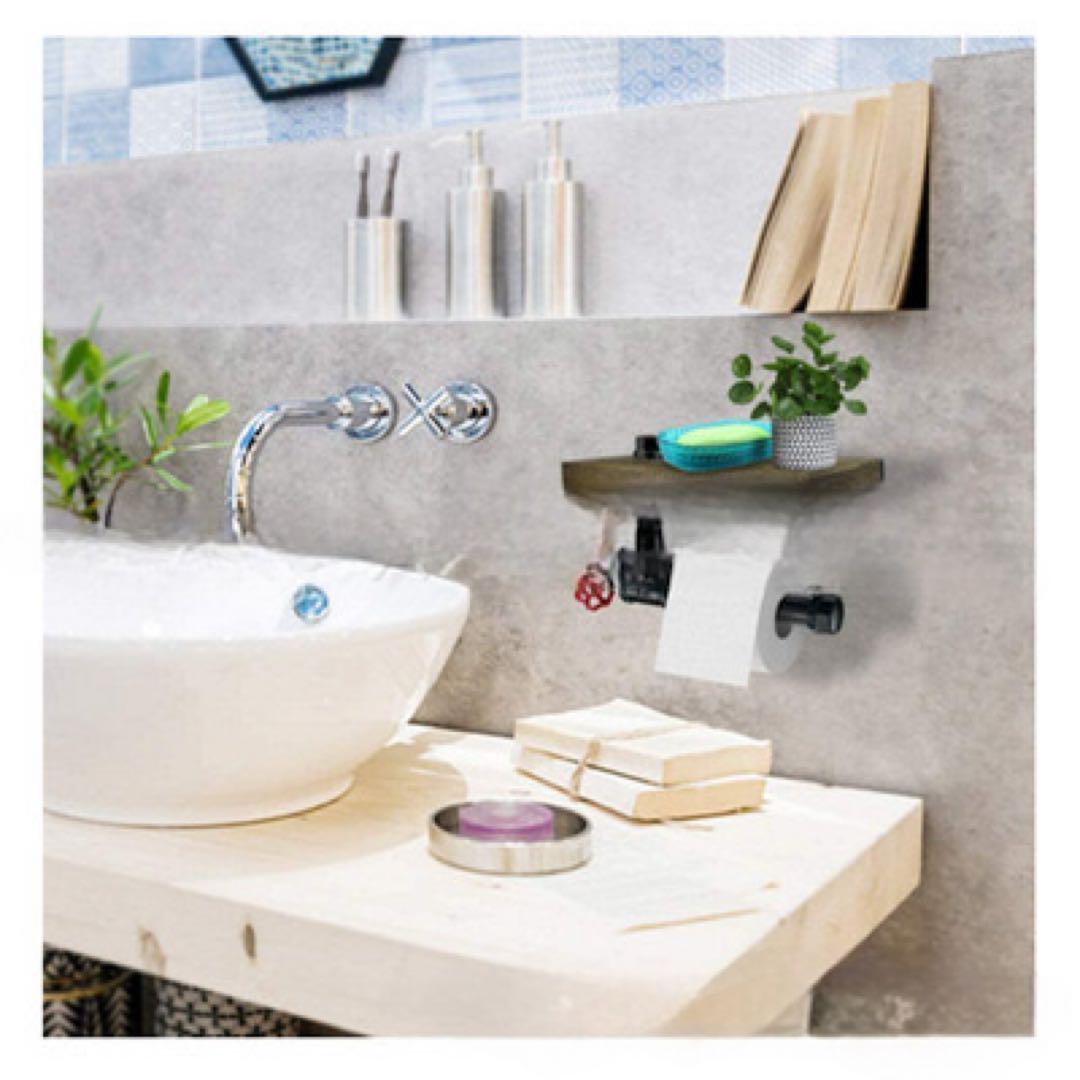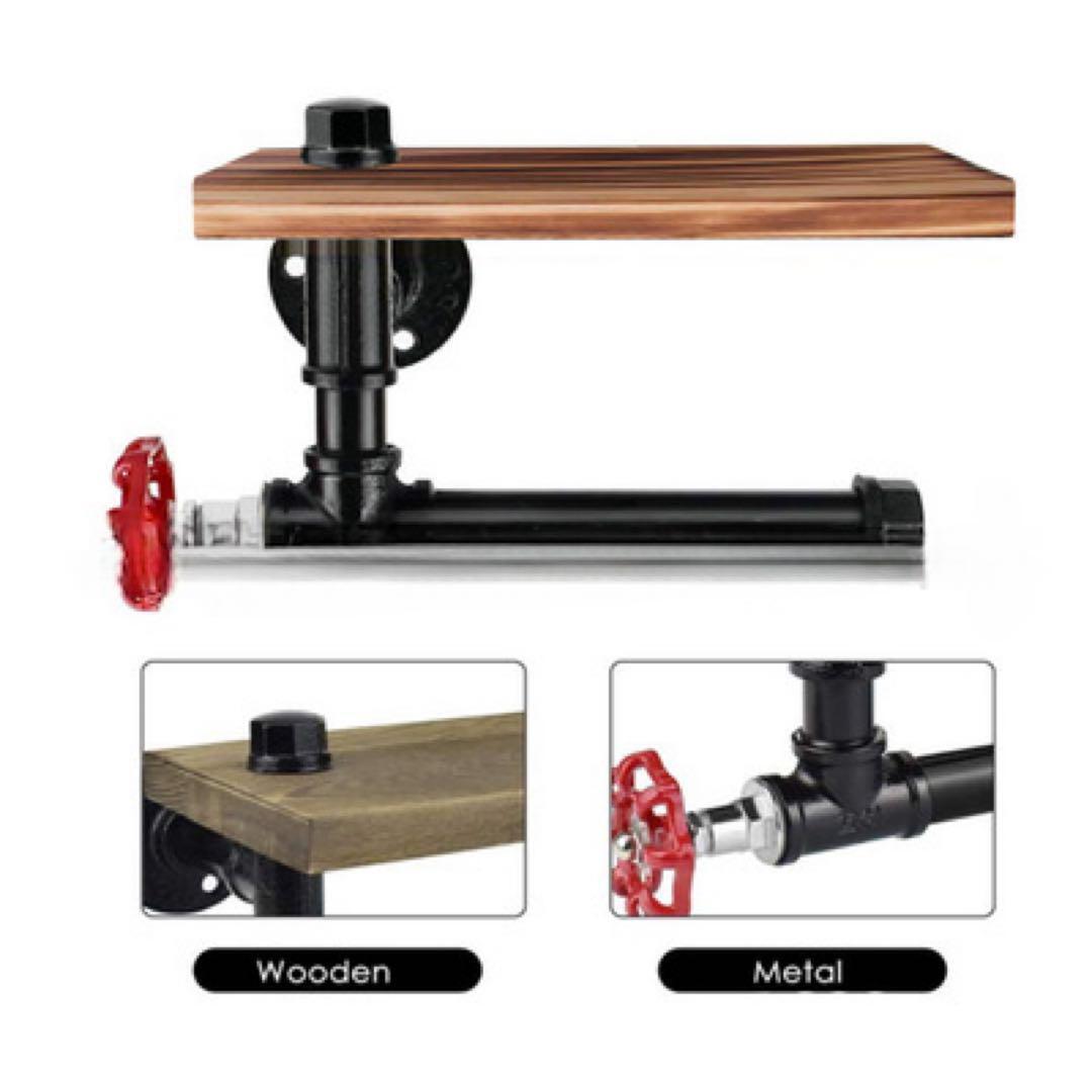 このトイレットペーパーホルダーは、工業的なスタイルを持ち、黒と赤の色合いが特徴です。バルブのデザインが目を引き、インテリアに個性を加えます。