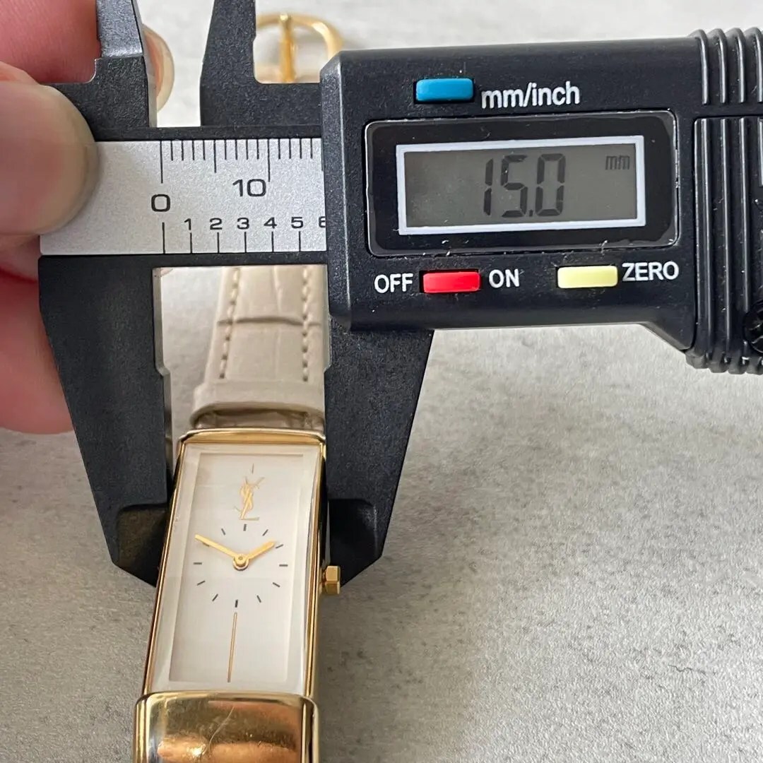 稼働品 YSL イヴサンローラン レクタンギュラー ゴールド 白文字盤 腕時計