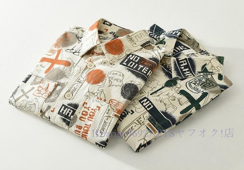 B2063☆新品春 長袖シャツ メンズ 花柄 個性シャツ トップス コットンシャツ 柔らか スウェットシャツ 紳士 オシャレ M~3XL グリーン
