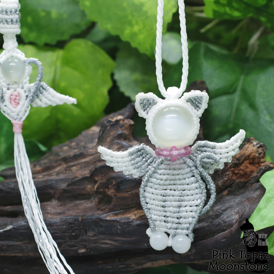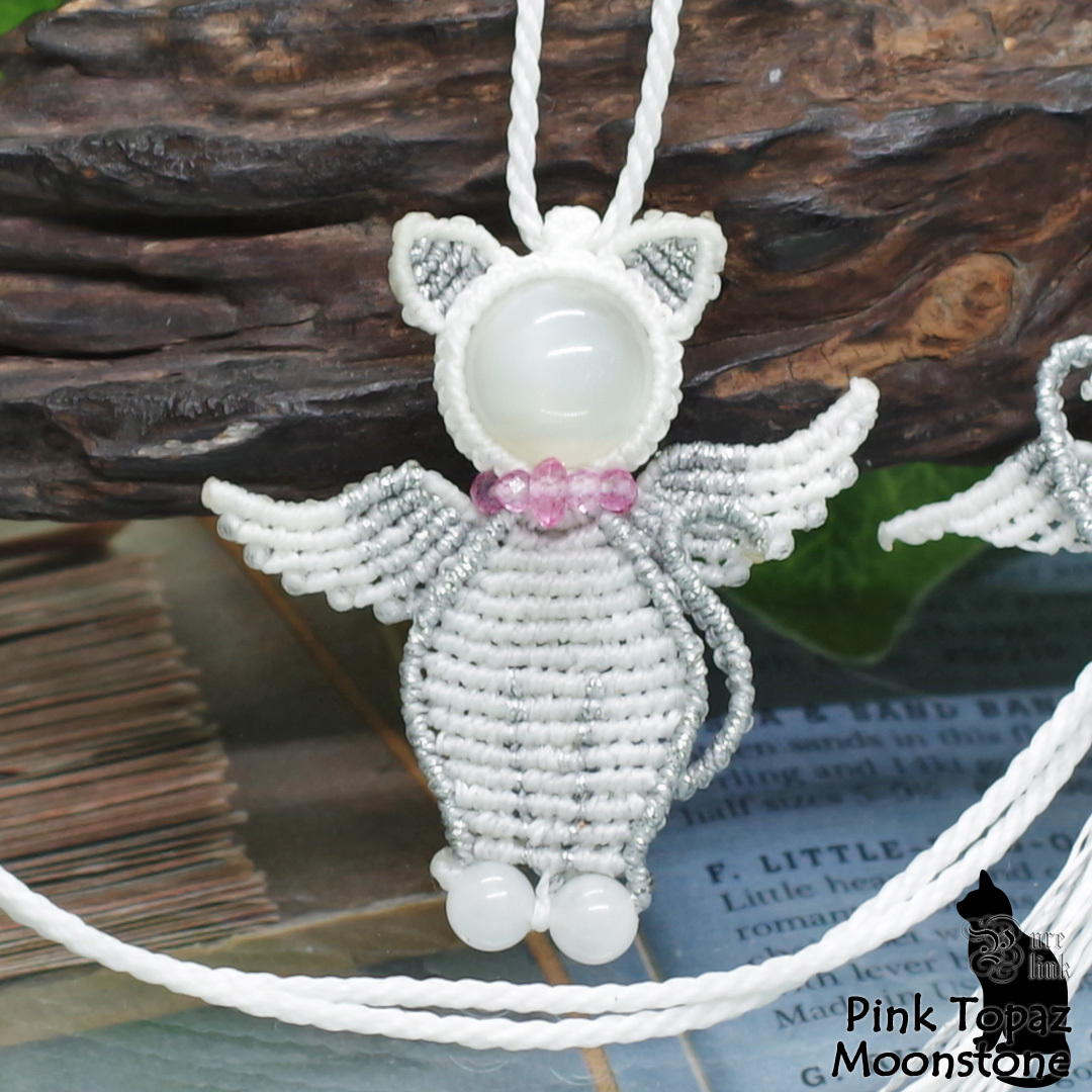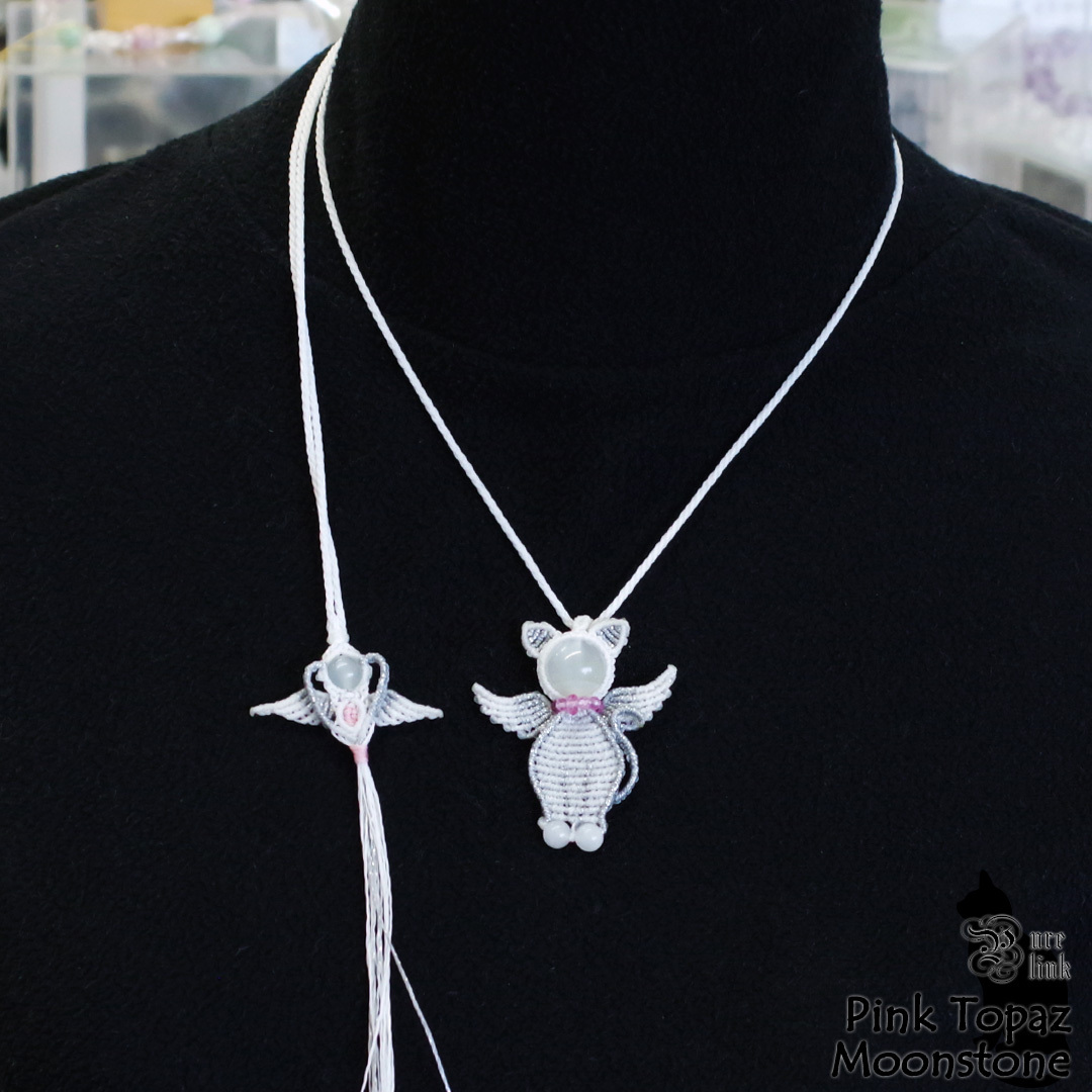 猫天使・お顔が『ムーンストーン』な!!猫マクラメ編みネックレス3