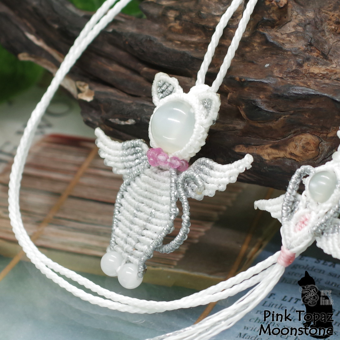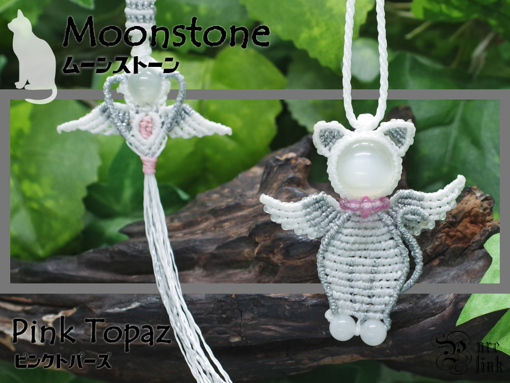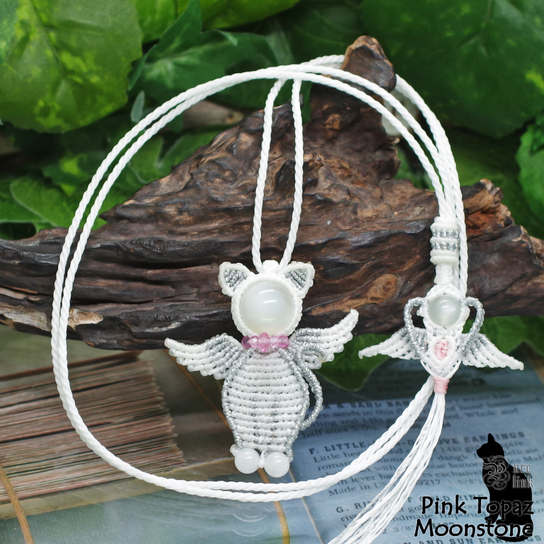 猫天使・お顔が『ムーンストーン』な!!猫マクラメ編みネックレス3